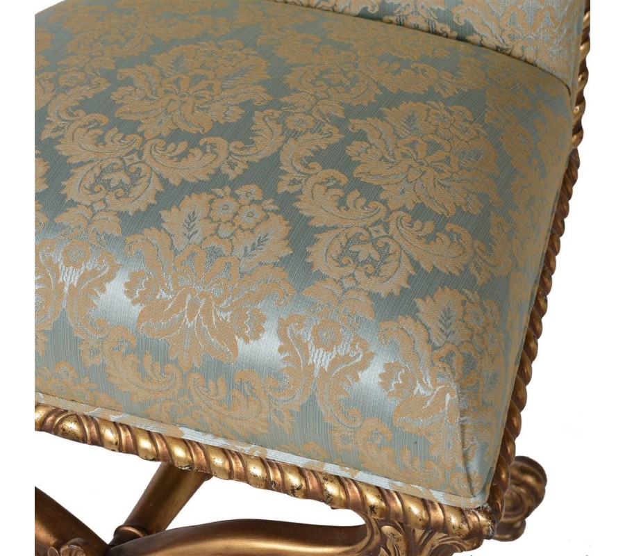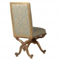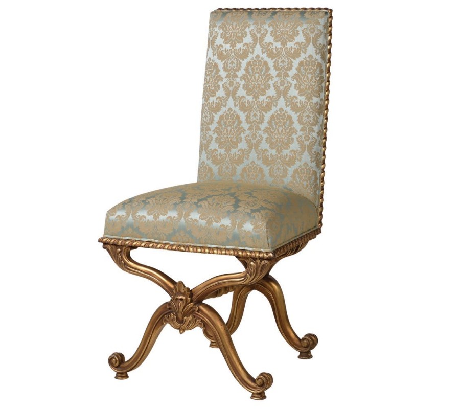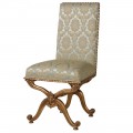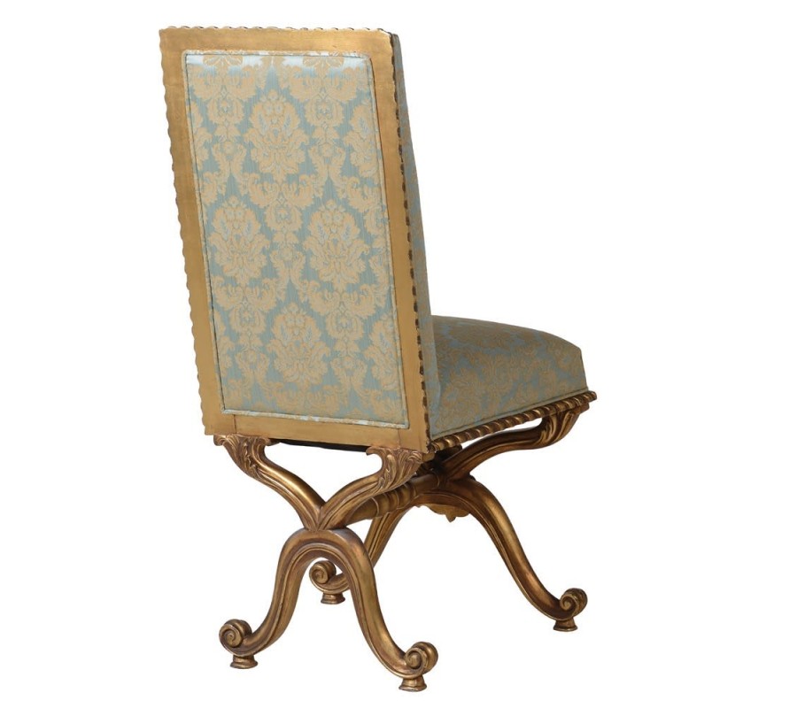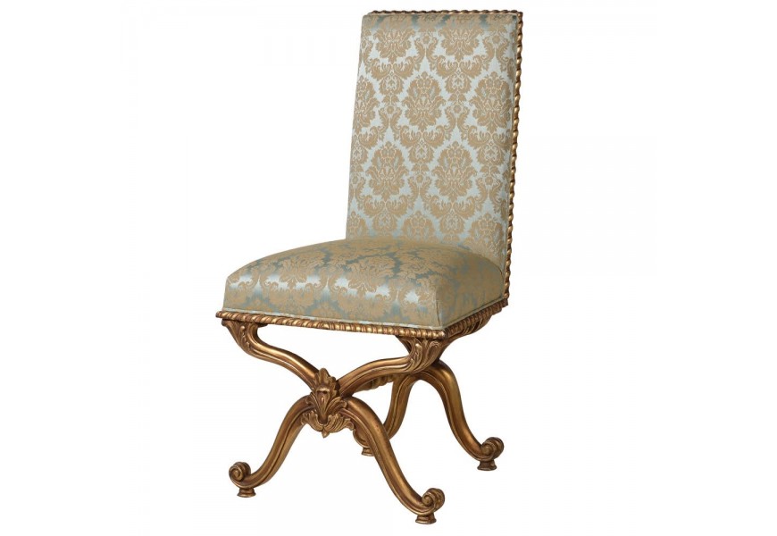 Luxusná a nadčasová jedálenská stolička z kolekcie Roi Gilt vás oslní svojím nádherným prevedením dômyselnej kombinácie béžového poťahu s ornamentálnym vzorom inšpirovaným flórou a zlatej farby nôh. Stolička Roi Gilt má postačujúcu výšku operadla pre pohodlné podopretie hlavy a poteší vás i skutočnosťou, že ornamentálne vyrezávané prekrížené nohy sú vyrobené z kvalitného mahagónového dreva. Stolička Roi Gilt dokonale zapadne najmä do interiérov ako sú jedálne, luxusné reštaurácie či nadčasové reprezentačné priestory firiem, ladených v zámockom a barokovom štýle. V rámci doplnkov odporúčame kombinovať s nežnou paletou farieb najmä v béžových a modrých či červených odtieňoch, pre navodenie pravej honosnej atmosféry.