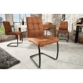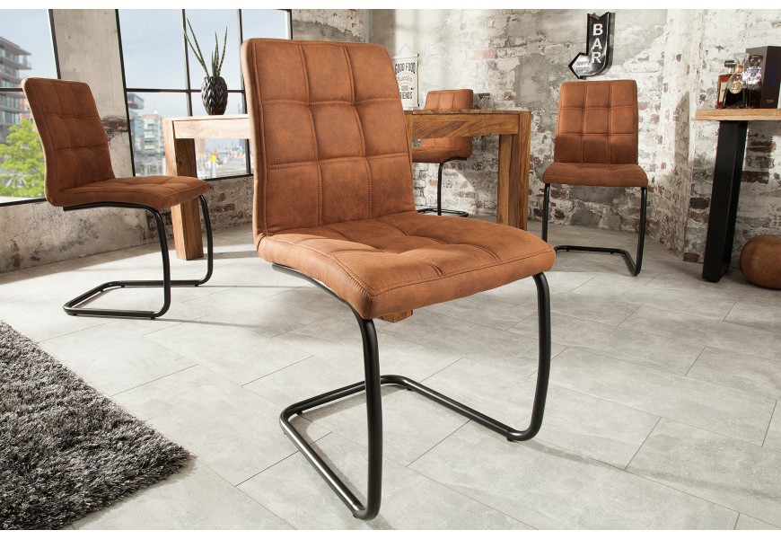 Dizajnová vintage jedálenská stolička Modena s hnedým poťahom z mikrovlákna a s čiernymi nohami 92cm