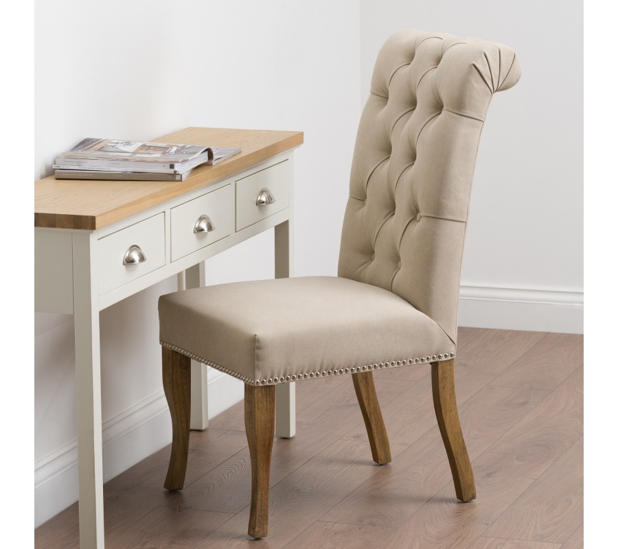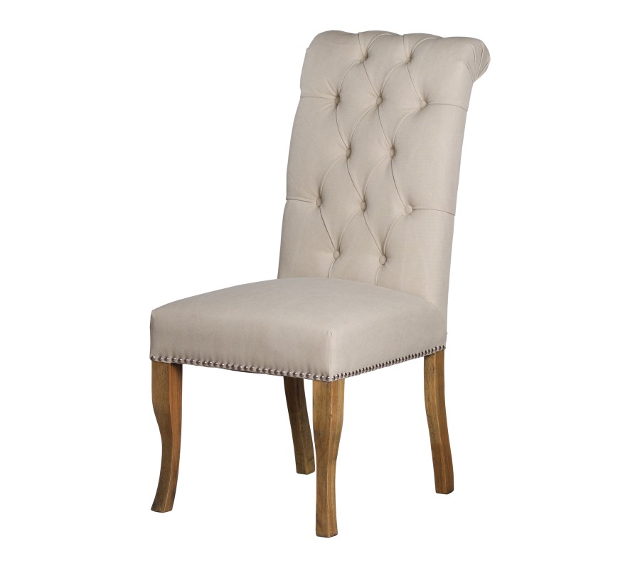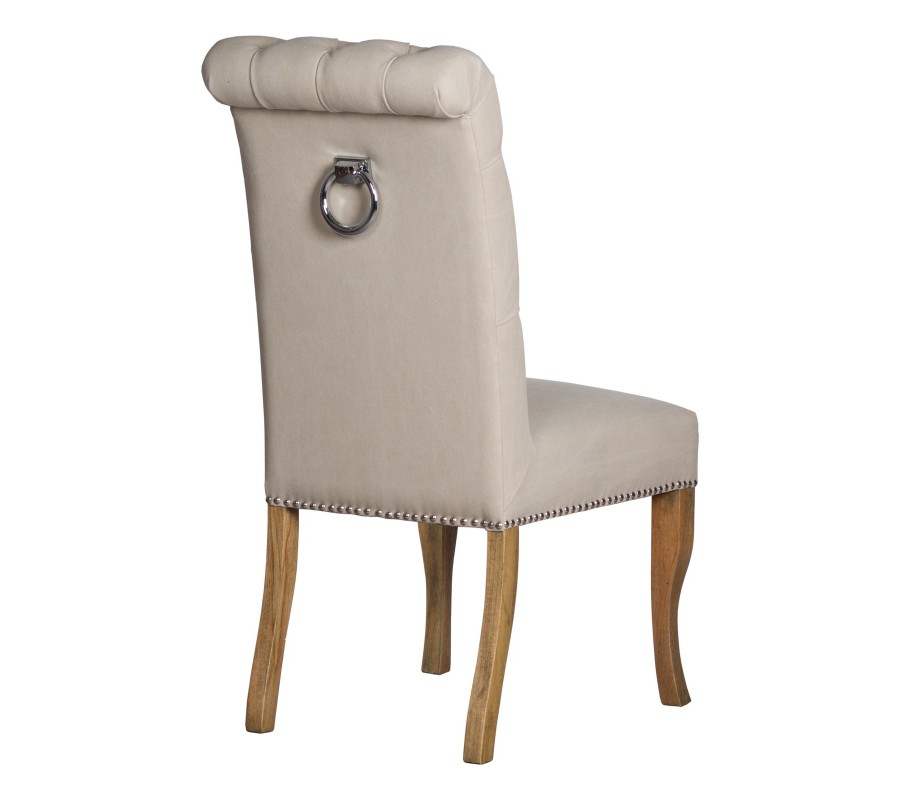 Jedálenská stolička Roll Top Thatcher je voľbou s ktorou nič nepokazíte. Jemná krémová farba spolu so svetlým drevom a chesterfieldským prešívaním sú známky luxusu a elegancie no zároveň vybíjanie na spodnej hrane stoličky a klopadlo v striebornej farbe ju robia extravagantnou a neprehliadnuteľnou. Jedálenská stolička Roll Top Thatcher je vhodná ako do moderných tak do klasickejšie zariadených interiérov.