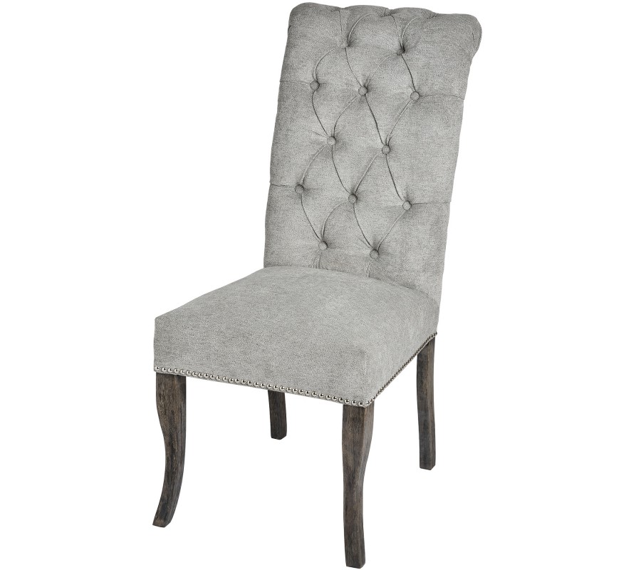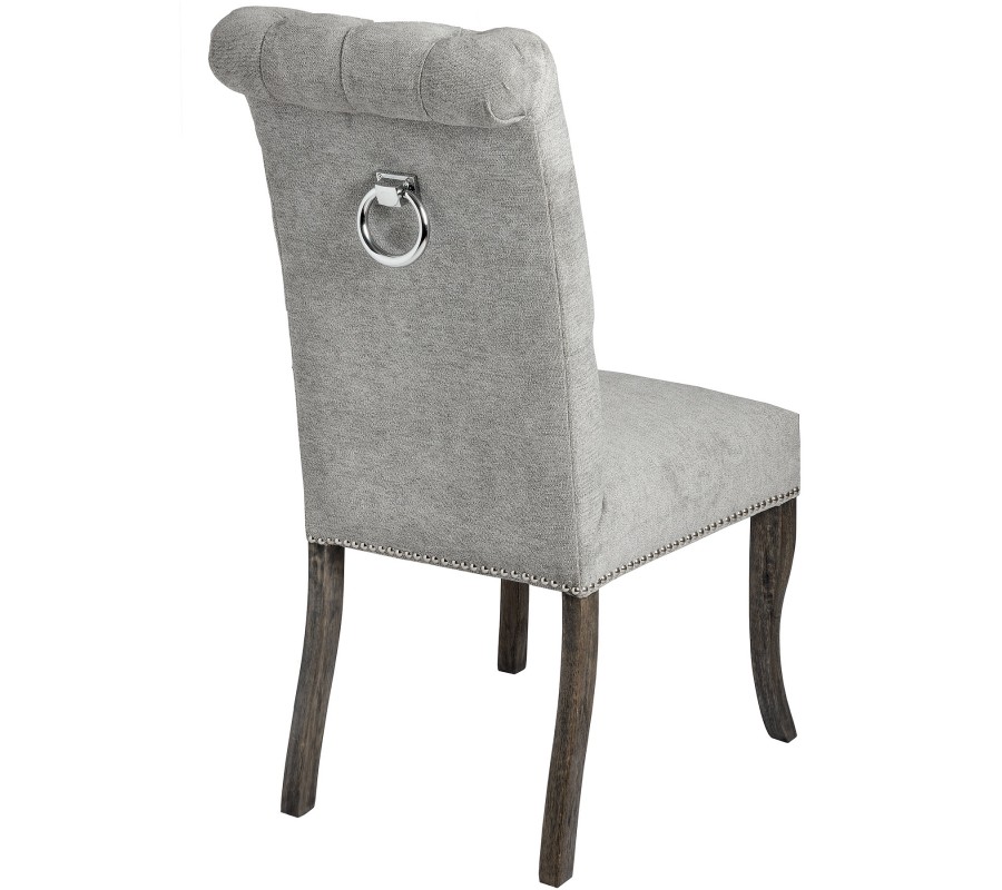 Chesterfield luxusná jedálenská stolička Roll Top Thatcher sivá so strieborným klopadlom 105cm