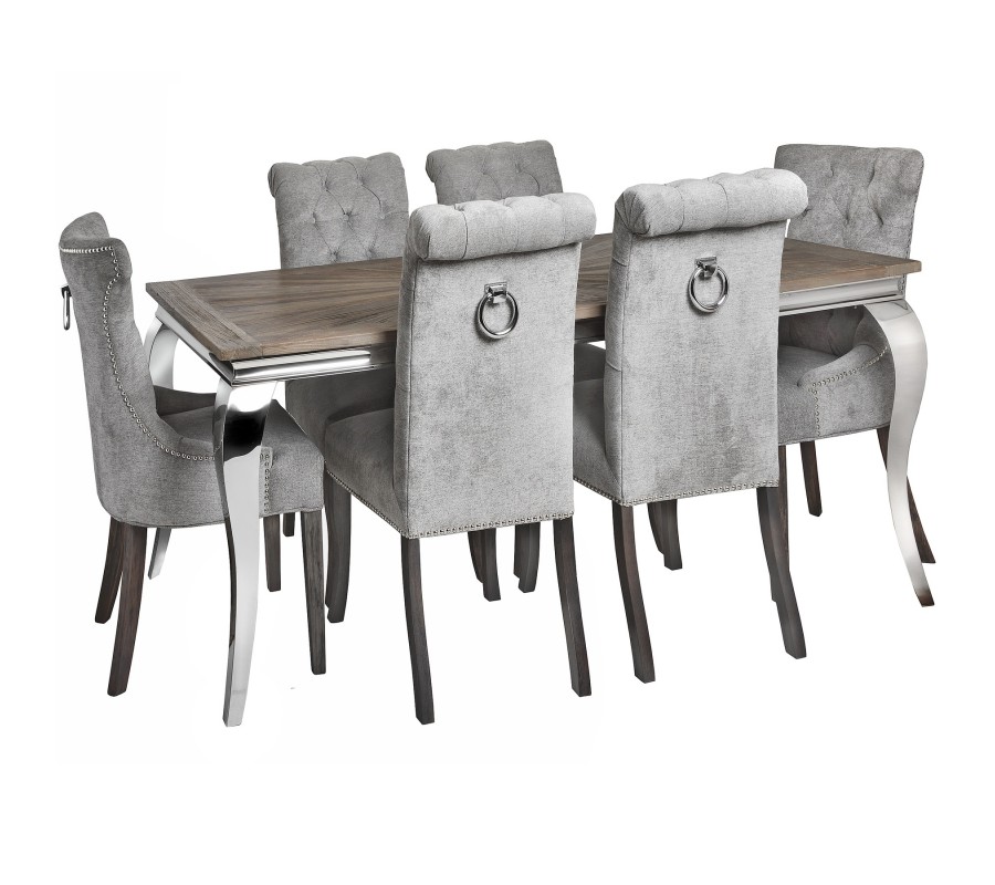 Jedálenská stoička Roll Top Thatcher je voľbou s ktorou nič nepokazíte. Strieborná farba spolu so svetlým drevom a chesterfield prešívaním sú známky luxusu a elegancie no zároveň vybíjanie na spodnej hrane stoličky a strieborná úchytka v tvare klopadla ju robia extravagantnou a neprehliadnuteľnou. Jedálenská stolička Roll Top Thatcher je vhodná ako do moderných, tak do klasickejšie zariadených interiérov.