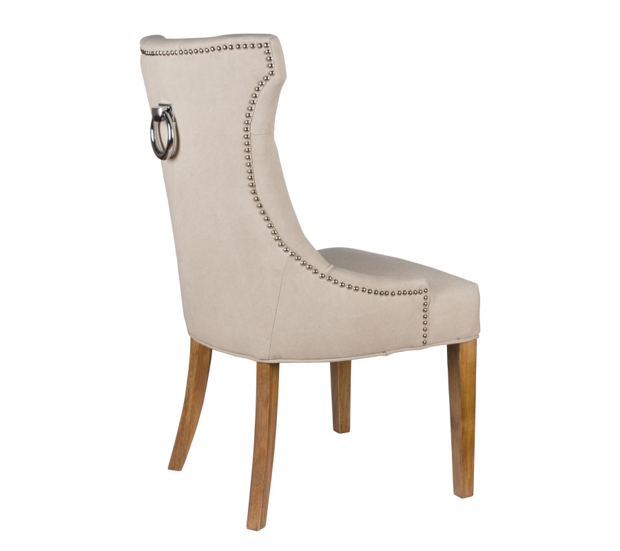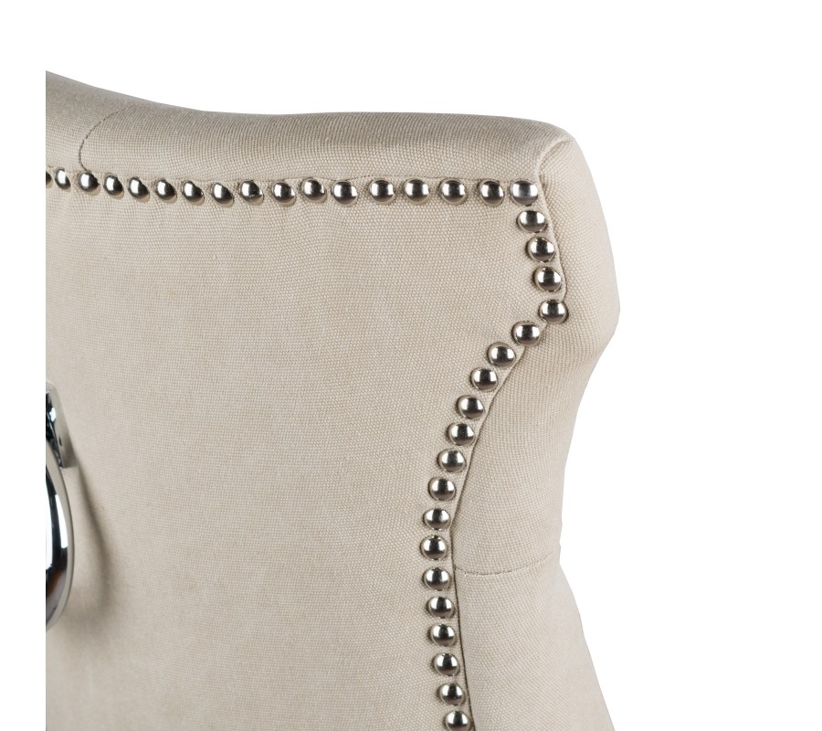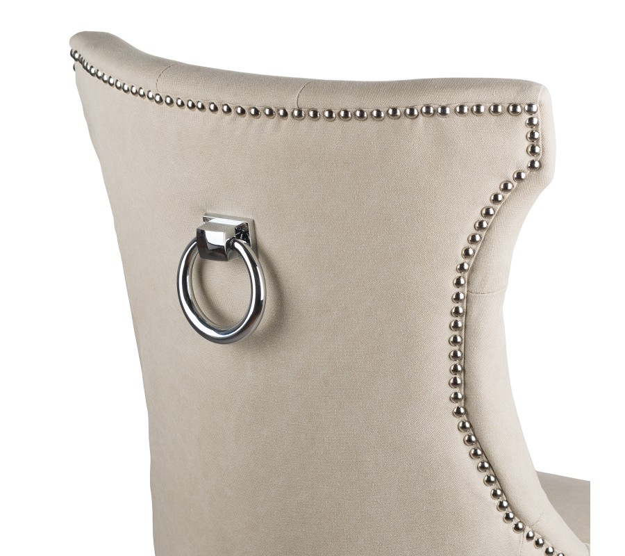 Chesterfield luxusná jedálenská stolička Thatcher krémová so strieborným klopadlom a nohami z masívu 100cm