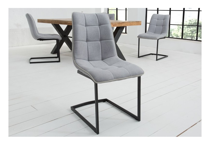 Moderná jedálenská stolička Suava so sivým textilným prešívaným poťahom a čiernou kovovou podstavou 88 cm