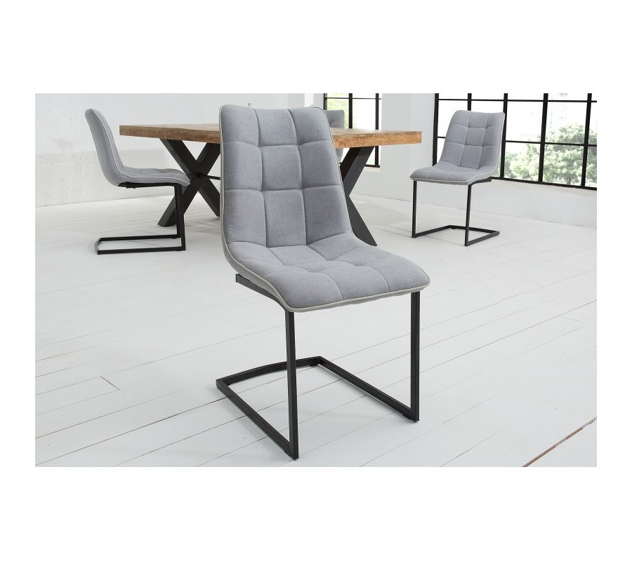 Jedálenská stolička Suava ponúka moderný dizajn v nadčasovej kombinácii sivého textilného poťahu so štvorcovým prešívaním a čiernej kovovej konzolovej konštrukcie. Vďaka čalúnenému sedadlu a operadlu bez bočných opierok pôsobí vzdušne, no zároveň poskytuje príjemný komfort.