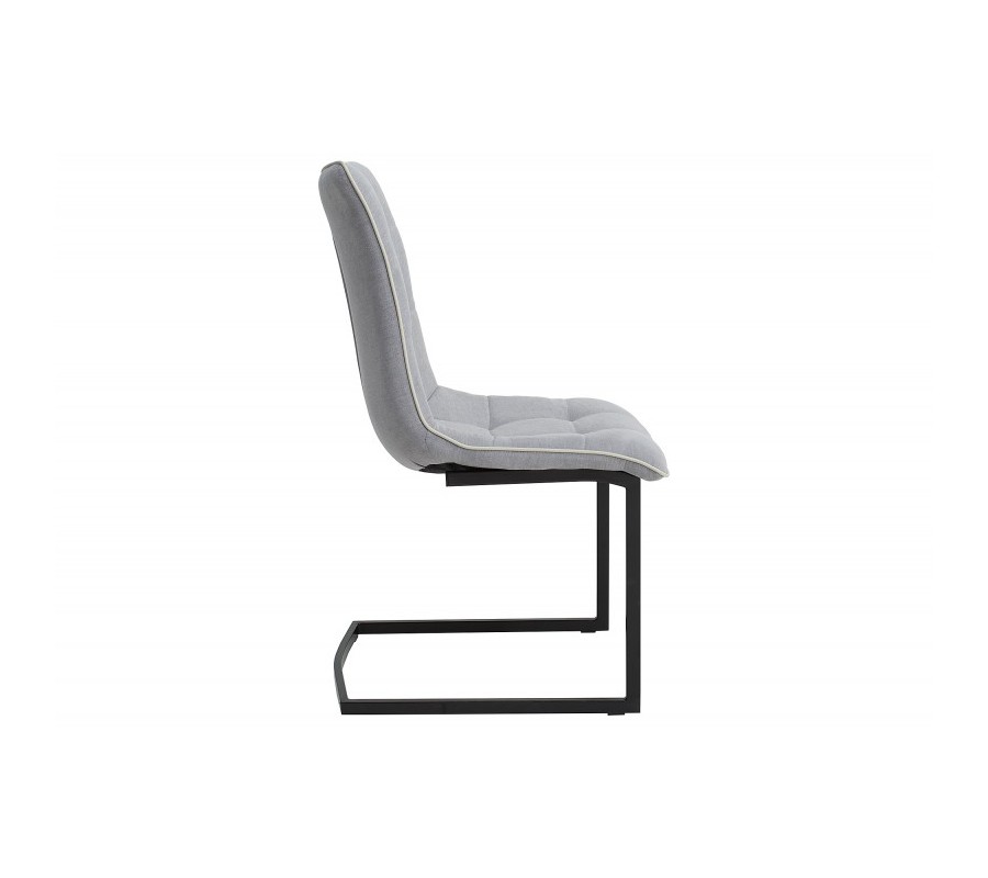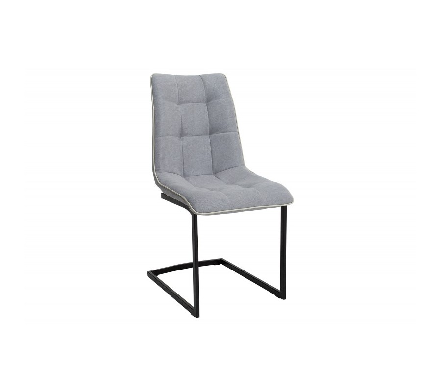 Jedálenská stolička Suava ponúka moderný dizajn v nadčasovej kombinácii sivého textilného poťahu so štvorcovým prešívaním a čiernej kovovej konzolovej konštrukcie. Vďaka čalúnenému sedadlu a operadlu bez bočných opierok pôsobí vzdušne, no zároveň poskytuje príjemný komfort.
