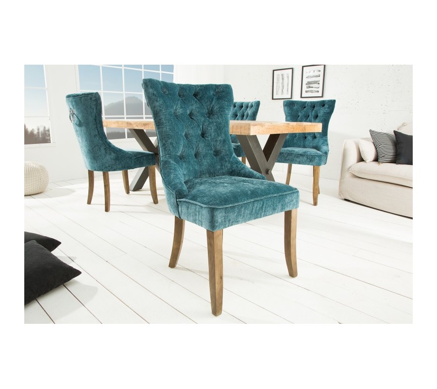 Dizajnová Chesterfield zamatová stolička Torino petrolejová