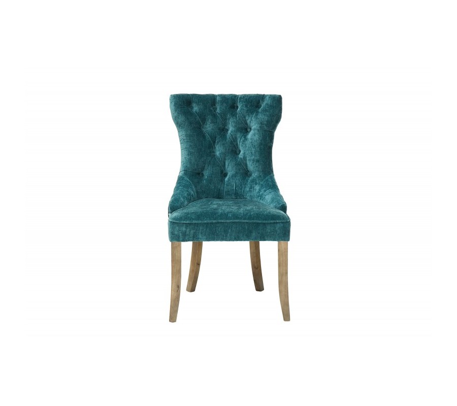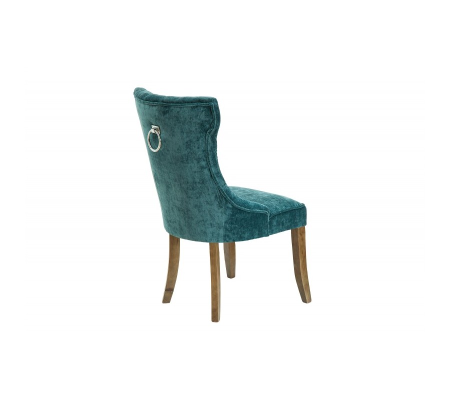 Stolička Torino osvieži akékoľvek jedálenské priestory a okamžite Vášmu príbytku pridá na luxuse. Kombinácia masívneho dreva a šitia v štýle Chesterfield pôsobí nadčasovo a elegantne, najmä vďaka petrolejovej farbe nestarnúceho zamatu. Celkovému elegantnému dizajnu napomáha k maximálnej možnej štýlovosti veľký strieborný prsteň na zadnej strane stoličky.