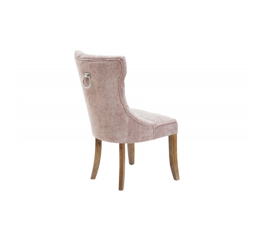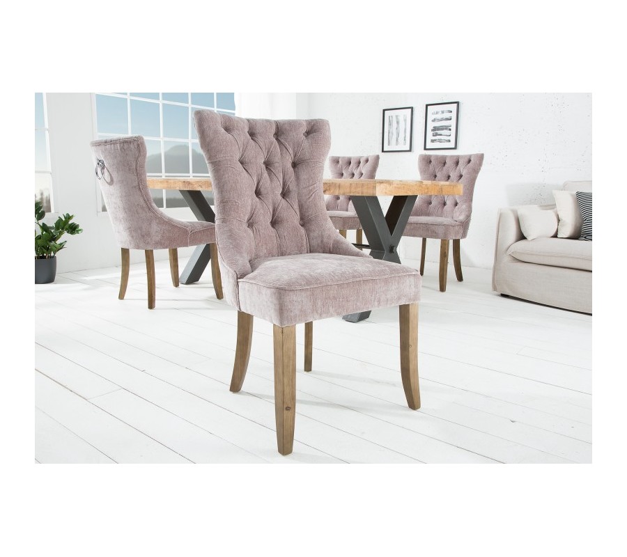 Stolička Torino osvieži akékoľvek jedálenské priestory a okamžite Vášmu príbytku pridá na luxuse. Kombinácia masívneho dreva a šitia v štýle Chesterfield pôsobí nadčasovo a elegantne. Samotný sivý zamat s nádychom staroružovej farby pôsobí príjemne minimalisticky a rezervovane. Celkovému elegantnému dizajnu napomáha k maximálnej možnej štýlovosti veľký strieborný prsteň na zadnej strane stoličky.