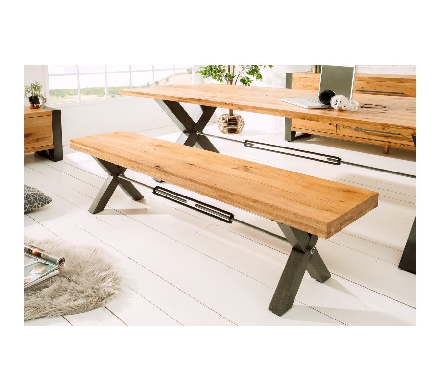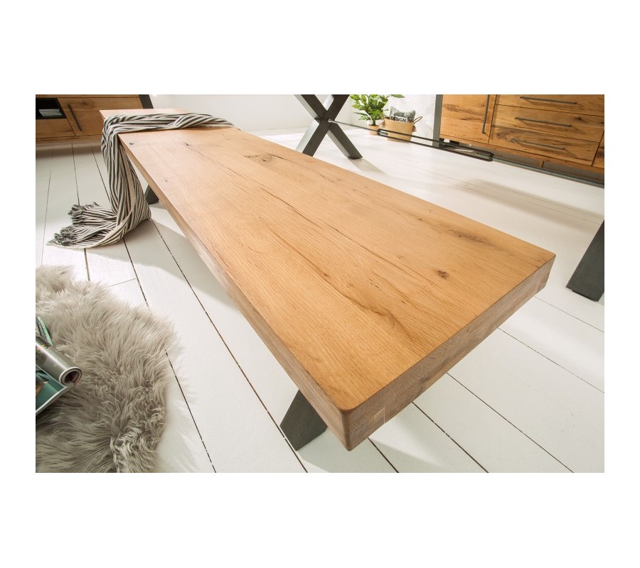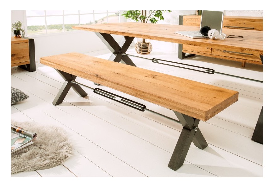 Jedinečná a nadčasová lavica Adin je skvelým kúskom do každého industriálne ladeného interiéru. Je vyrobená z masívneho dreva z divokého dubu, na ktorého povrchu môžeme vidieť zaujímavú kresbu. Svetlá farba pôsobí príjemne a vašu miestnosť rozjasní. Kontrastným prvkom sú čierne kovové nohy v tvare x, ktoré pripomínajú industriálny štýl. Lavica Adin vytvorí skvelú dvojicu s rovnomenným jedálenským stolom, ktorý nájdete v našej ponuke. Vynikne najmä v svetlo ladených interiéroch, kde môže dominovať.