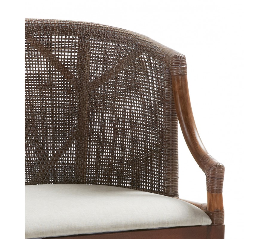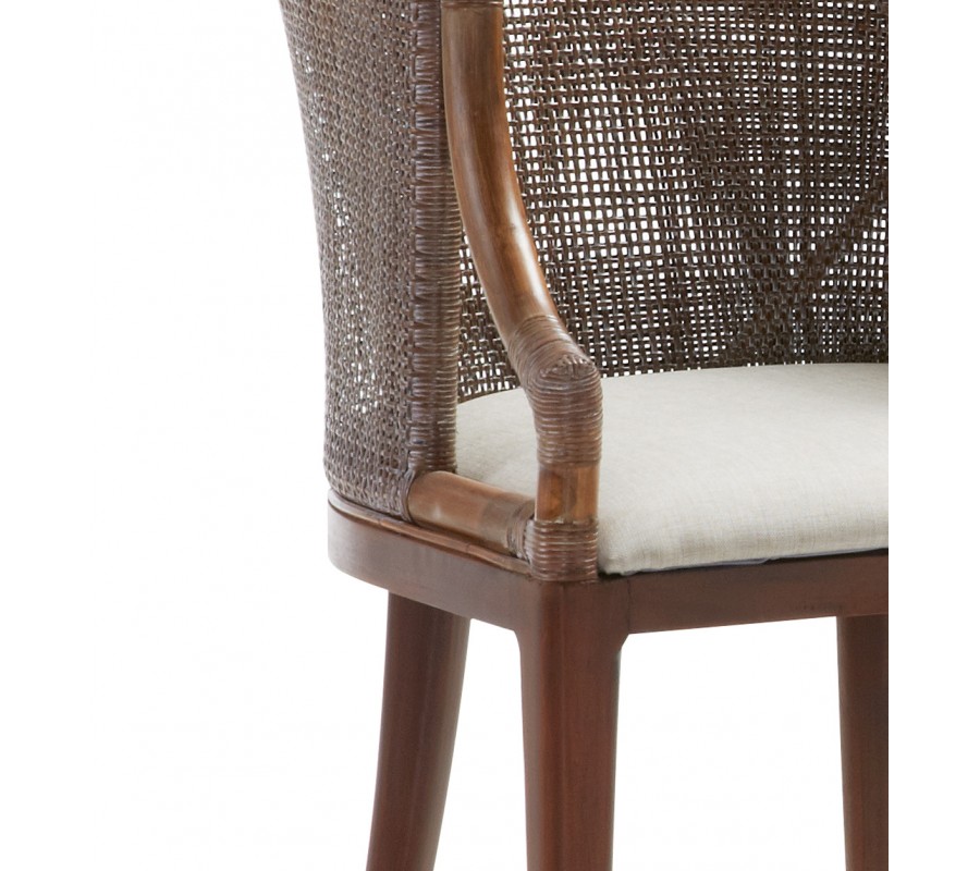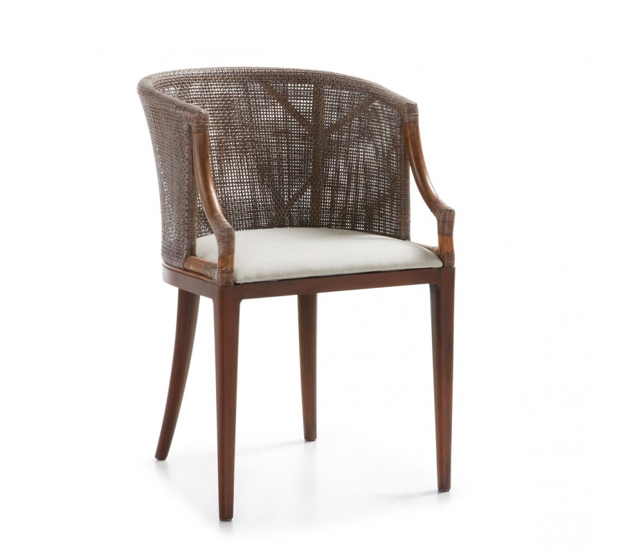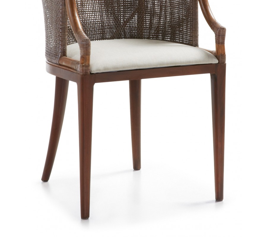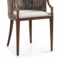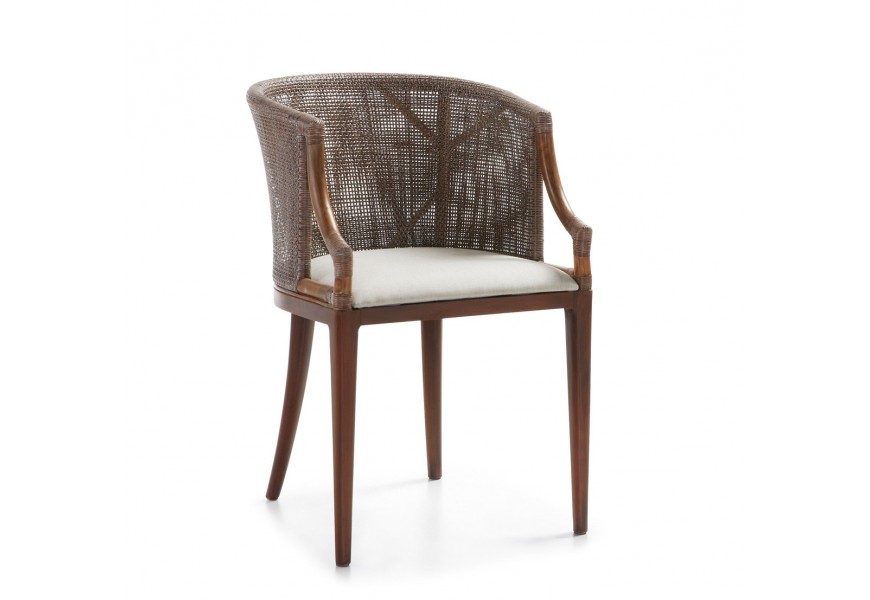 Štýlová stolička Luxor s lakťovými opierkami je vyrobená z kvalitného teakového dreva a ratanu, z ktorého je vyrobená jej zadná opierka. Voľba materiálov, ktoré sa vyznačujú svojou odolnosťou voči vplyvom počasia z nej robí ideálny kúsok štýlového záhradného nábytku.