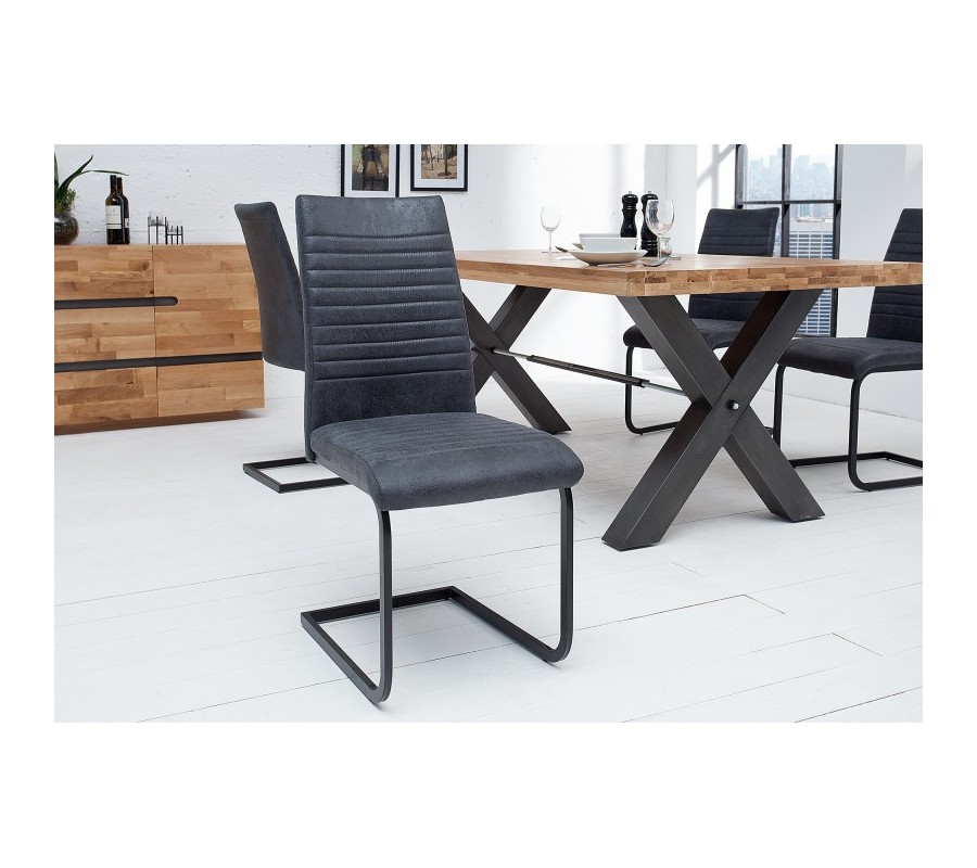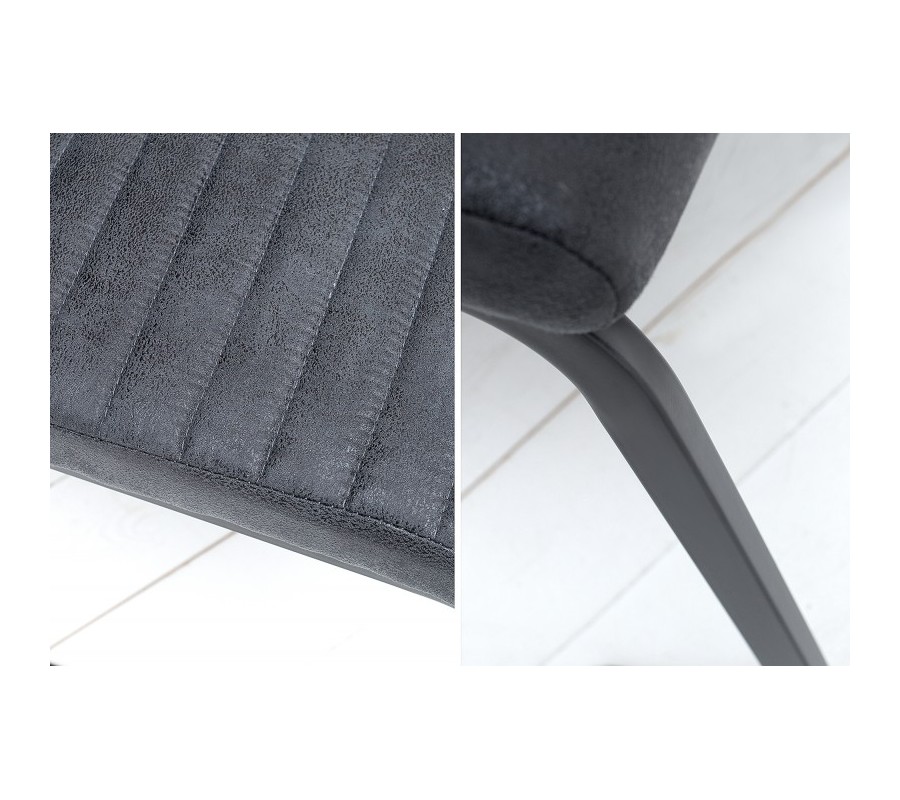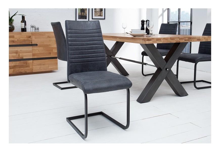 Industriálna dizajnová stolička zaujme čalúnením z mikrovlákna, ktoré pripomína zostarnutú kožu, čím stolička získava vintage vzhľad. Upúta klasickým horizontálnym prešívaním na chrbte aj na sedáku. Vysoká opierka dodáva potrebný komfort aj pri dlhšom sedení na tejto stoličke. Kovová konštrukcia zabezpečuje pevnosť a odolnosť a svojou pružnosťou zvyšuje vaše pohodlie. Vďaka bohatému polstrovaniu je mimoriadne pohodlná. Elegantný vzhľad vynikne v kombinácií s industriálnym jedálenským stolom.