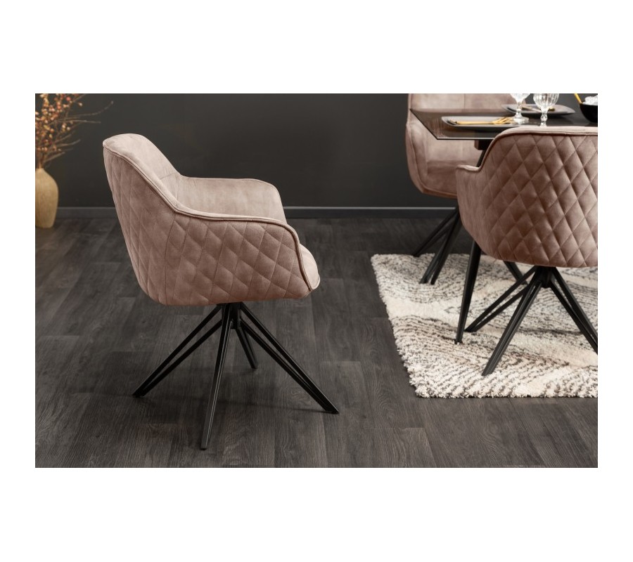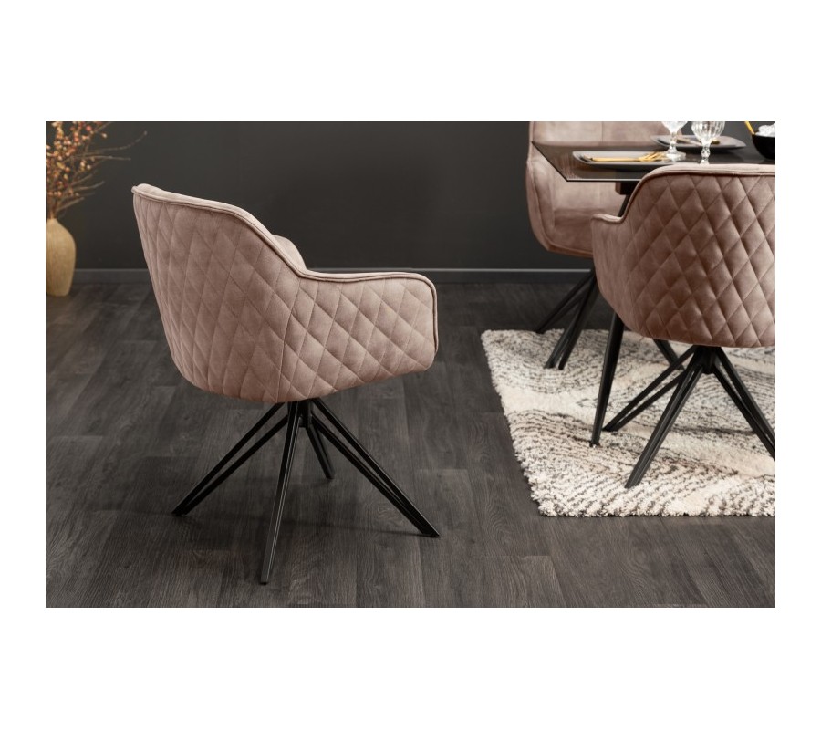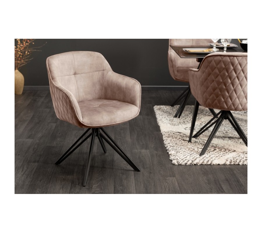 Moderný dizajn stoličky Marmol je tvorený mäkkým čalúneným poťahom a kovovými nohami v čiernej farbe. Čalúnenie v béžovo sivom odtieni je doplnené jemným prešívaním na vnútornej aj zadnej strane operadla a dodáva stoličke jedinečný pôvab. Vďaka opierkam na ruky je pohodlie počas sedu zachované aj počas dlhšieho sedu. Konštrukcia v čiernej práškovej povrchovej úprave umožňuje otáčanie sedacej plochy počas sedu o 180 stupňov. Stolička Marmol dokonale vynikne s jedálenskými stolmi s prvkami kovu a kameňa. Vďaka neutrálnym odtieňom poťahu a nôh sa stoličky veľmi ľahko kombinujú a skvele doplnia každý interiér.