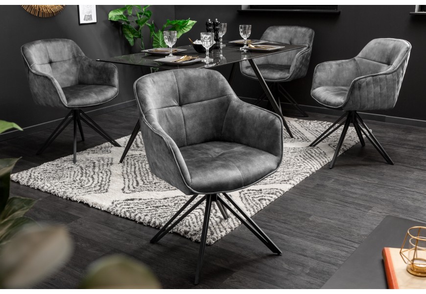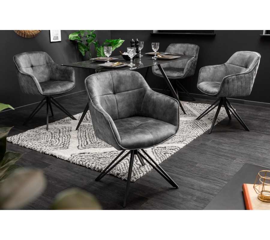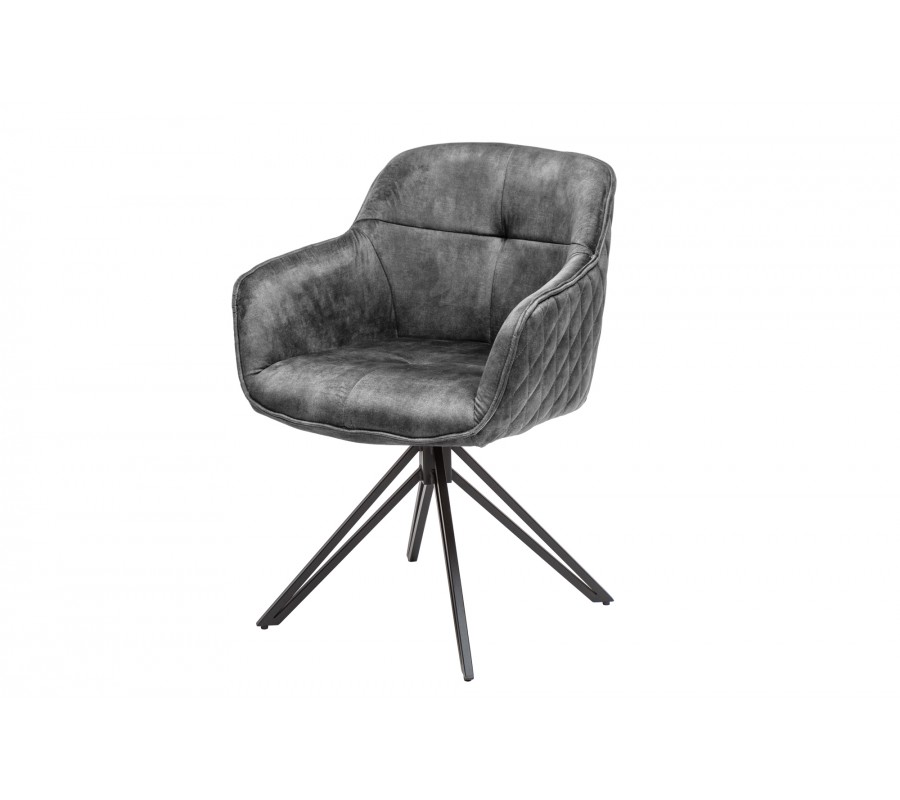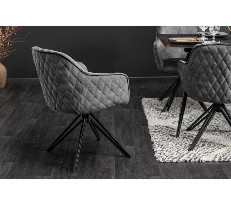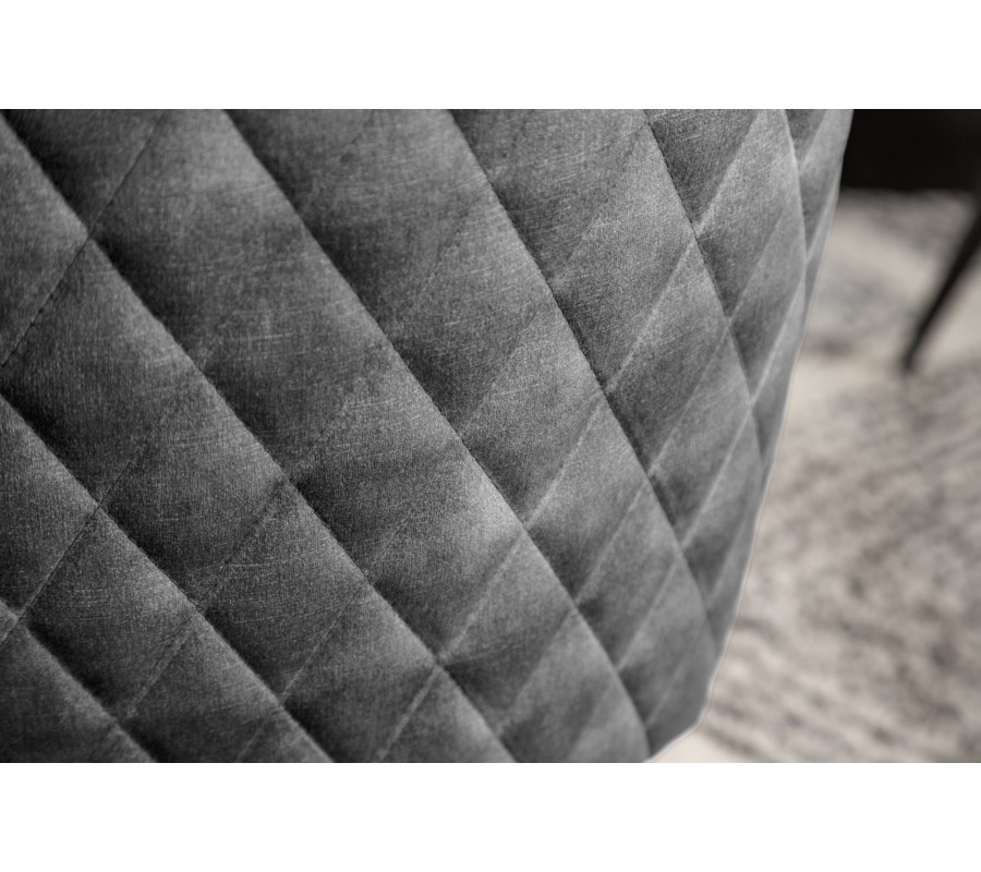 Nadčasový dizajn stoličky Marmol je tvorený príjemným čalúneným poťahom a kovovými nohami v čiernej farbe. Čalúnenie v tmavom odtieni sivej je doplnené jemným prešívaním na vnútornej aj zadnej strane operadla a dodáva stoličke jedinečný pôvab. Vďaka opierkam na ruky je pohodlie počas sedu zachované aj počas dlhšieho sedu. Konštrukcia v čiernej práškovej povrchovej úprave umožňuje otáčanie sedacej plochy počas sedu o 180 stupňov. Stolička Marmol dokonale vynikne s jedálenskými stolmi s prvkami kovu a kameňa. Vďaka neutrálnym odtieňom poťahu a nôh sa stoličky veľmi ľahko kombinujú a skvele doplnia každý interiér.