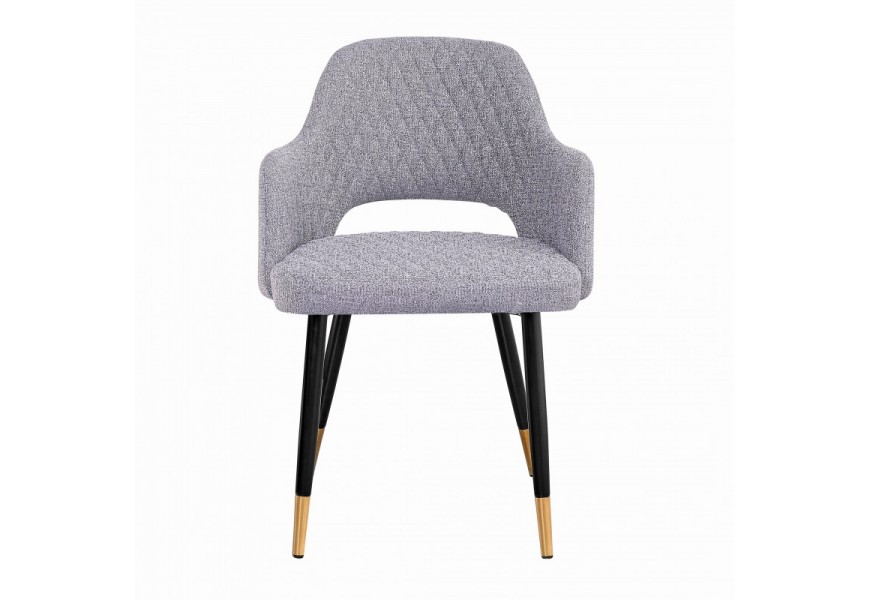 Art-deco štýlová stolička Fribourg so svetlosivým poťahom a čieno-zlatými nožičkami