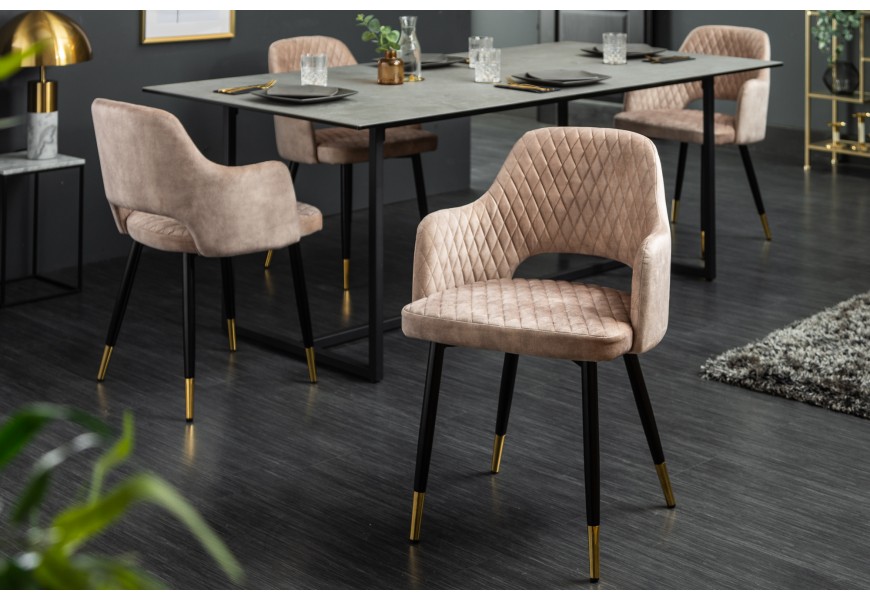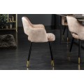 Art-deco stolička Fribourg s béžovým zamatovým poťahom a čierno-zlatými nohami