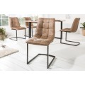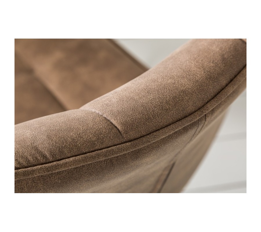 Dizajnová stolička Suava III je kúskom vhodným do všetkých industriálne či vintage ladených interiérov. Vďaka poťahu v univerzálnej hnedej farbe zapadne skutočne kamkoľvek a dá sa poľahky farebne doplniť s ďalším nábytkom či doplnkami. Tvarovaná sedacia časť a operadlo sa postarajú o vaše dokonalé pohodlie a skvelú stabilitu zabezpečuje čierna kovová konštrukcia, ktorá stoličke dodáva industriálny nádych. Príjemné látkové čalúnenie z mikrovlákna je praktické na údržbu a zároveň u vás doma vyčarí štýlový vintage efekt. Stoličky Suava III možno využiť v kuchyni, jedálni, ale i v pracovni alebo v konferenčných miestnostiach.