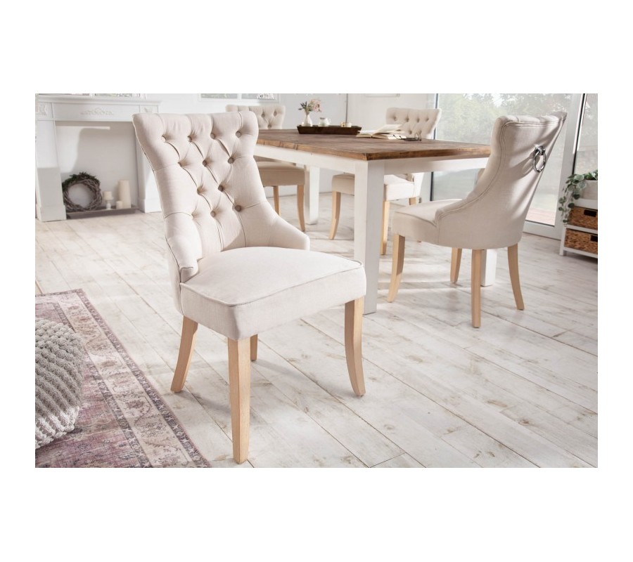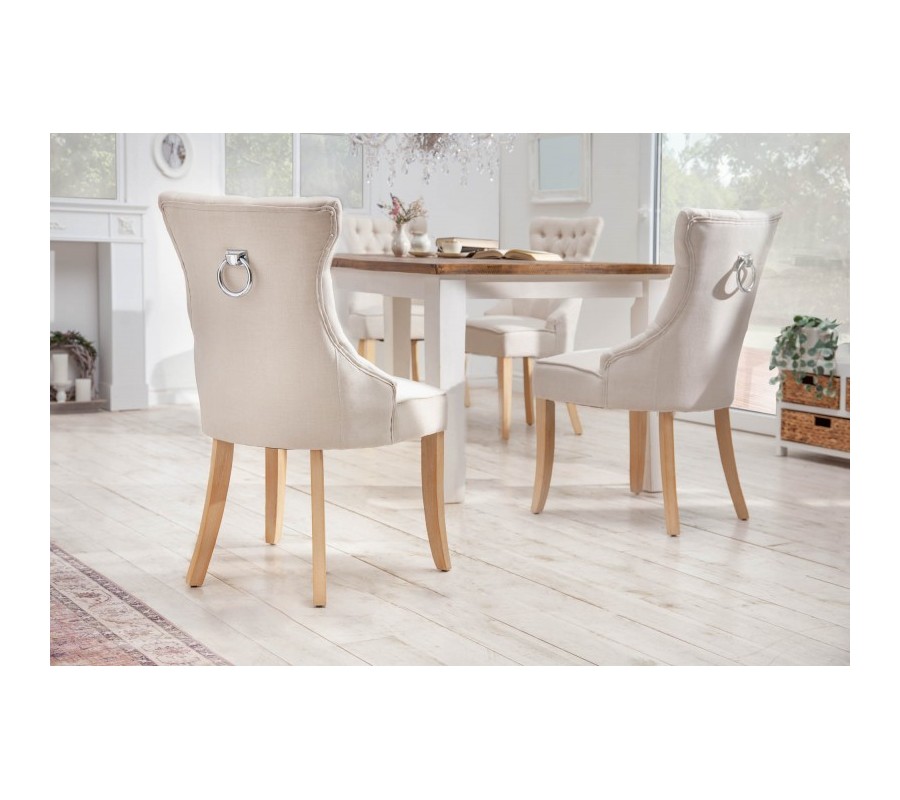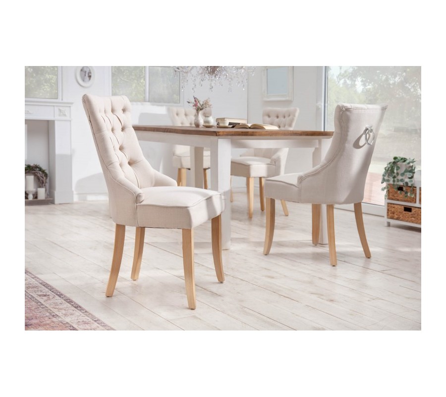 Štýlová jedálenská stolička Torino je elegantným kúskom vhodným do retro ladených jedální, obývačiek či kuchýň. Disponuje čalúnením v bielej farbe s nadčasovým Chesterfield prešívaním na operadle. Operadlo aj sedacia časť sú uspôsobené k vášmu stopercentnému komfortu. Biela farba poťahu je doplnená o hnedé drevené nohy, ktoré zabezpečia výbornú stabilitu. Na zadnej časti operadla sa nachádza dizajnový kovový kruh v tvare klopadla. Stoličky Torino skvelo zapadnú do svetlých priestorov a odporúčame ich kombinovať s nábytkom z masívneho dreva.
