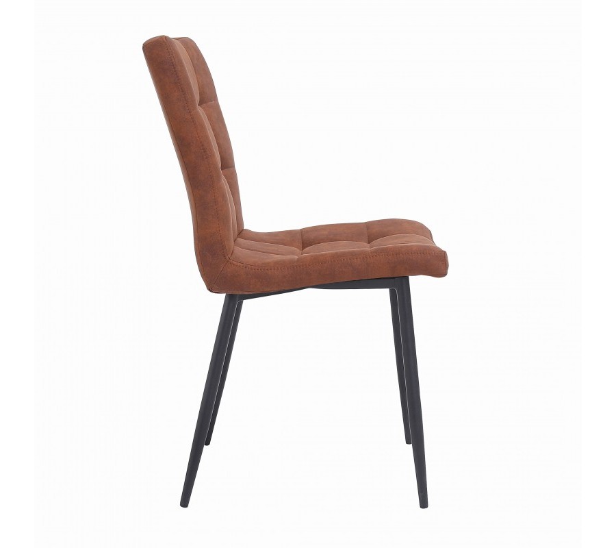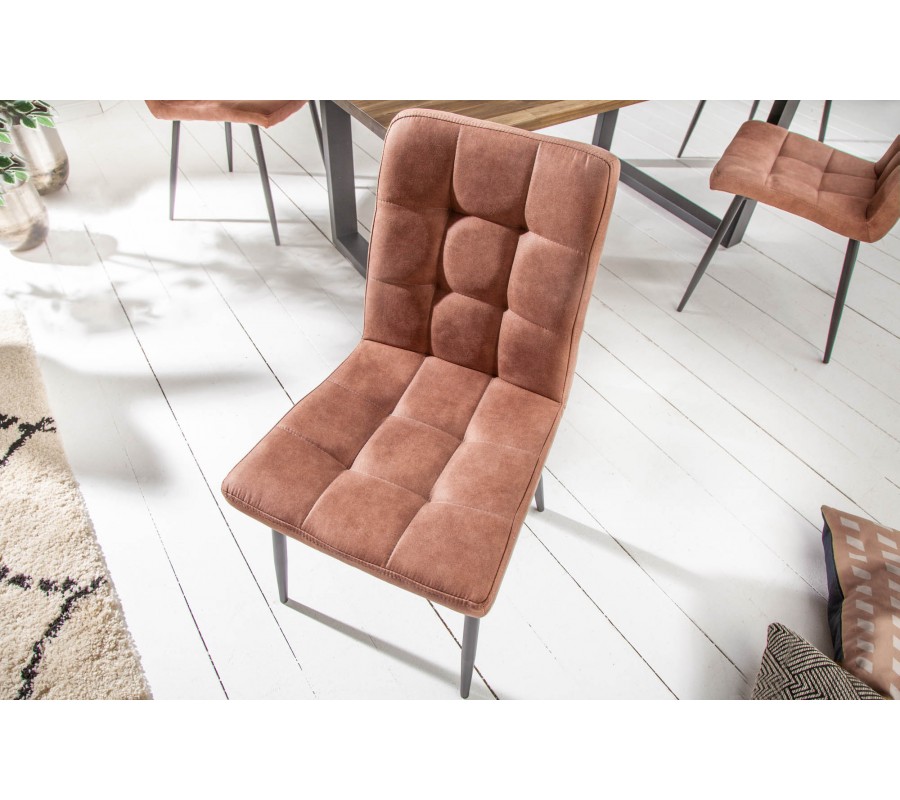 Dizajnová jedálenská stolička Derris je unikátnym kúskom, ktorý u vás doma pomôže navodiť skutočný vintage či retro nádych. Jednoduchý dizajn spolu s kvalitnými materiálmi tvoria jedinečnú kombináciu, ktorá krásne zapadne do každej štýlovej jedálne či kuchyne! Poťah z mikrovlákna sa nesie v dizajnovej hnedej farbe. Mikrovlákno je skvelým materiálom na údržbu a zároveň stoličke dodáva unikátny retro efekt. Celý dizajn je doplnený kovovými nohami v čiernej farbe. Vďaka tejto univerzálnej a nadčasovej farebnosti sa stoličky Derris dajú výborne kombinovať s rôznymi ďalšími kúskami a výborne zapadnú do rôznofarebne ladených interiérov.
