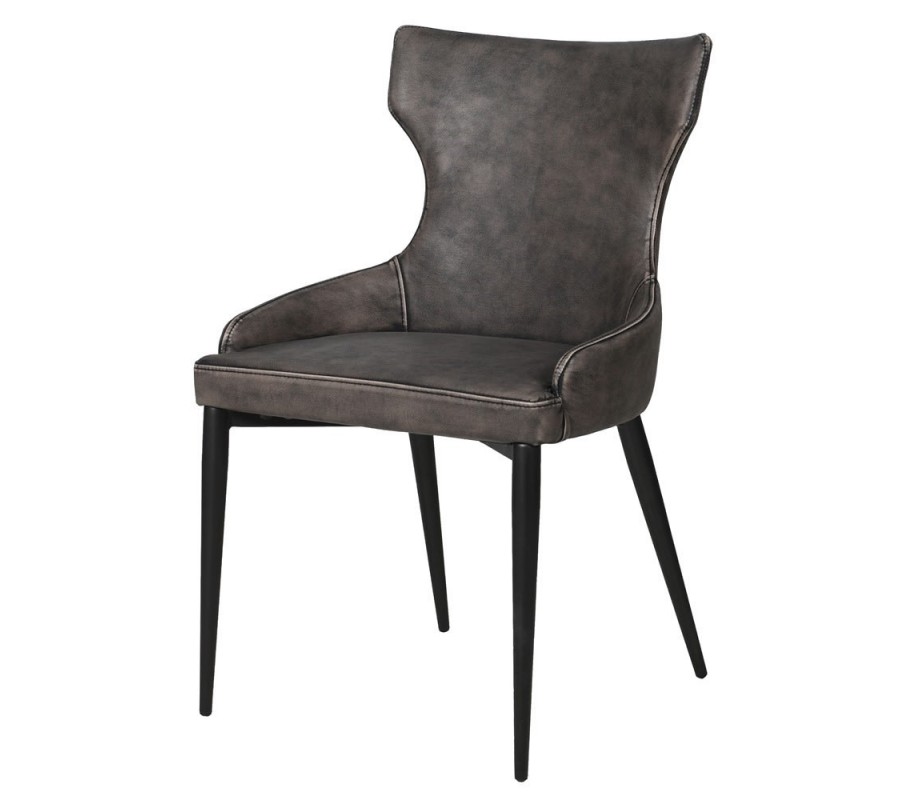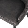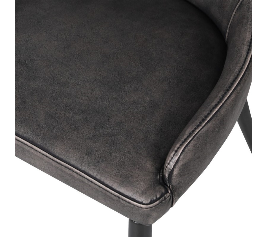 Dizajnová jedálenská stolička z našej kolekcie Bard je elegantným a štýlovým kúskom vhodným do retro alebo vintage ladených jedální, obývačiek či konferenčných miestností. Zaujme svojím elegantným čalúnením z ekokože v univerzálnej sivej farbe, ktoré je doplnené čiernymi kovovými nohami. Vďaka operadlu v tvare egg je stolička pohodlná aj na dlhšie sedenie. Línia operadla prechádza plynulým oblúkom do prednej časti stoličky v podobe minimalistických podrúčok. Kožený vzhľad krásne zapadne do svetlejších i tmavších priestorov a do vášho interiéru vnesie luxusný nádych. Odporúčame stoličky Bard kombinovať s masívnym jedálenským stolom, koženou sedačkou a výraznými dekoráciami vo vintage štýle.