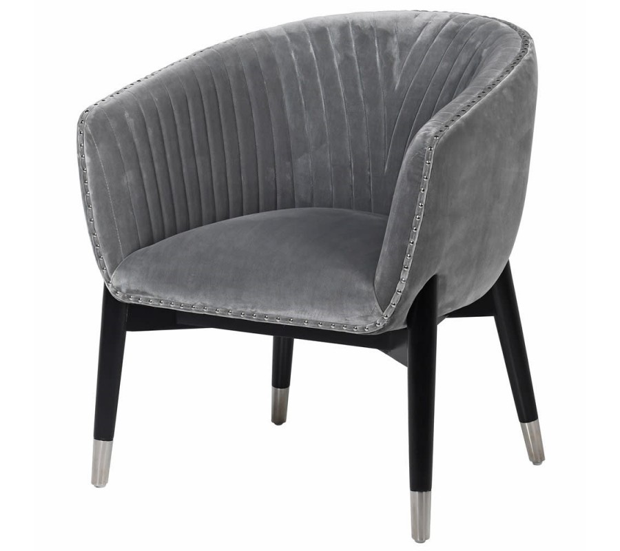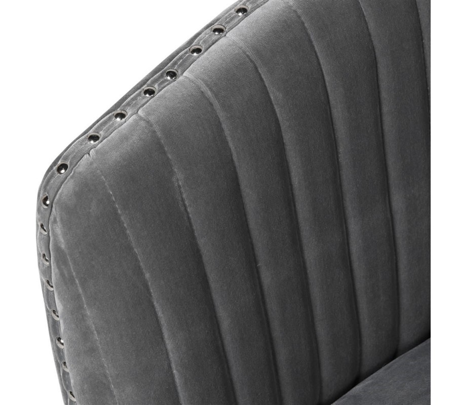 Štýlová art-deco stolička Bresta v sivom zamatovom poťahu s čiernymi kovovými nožičkami 82cm