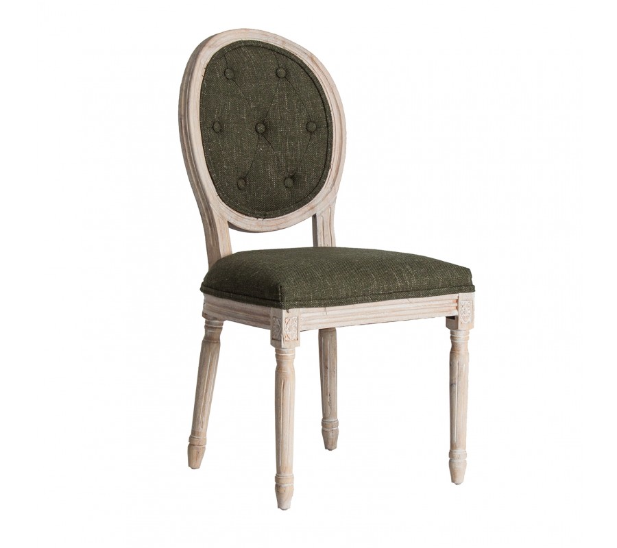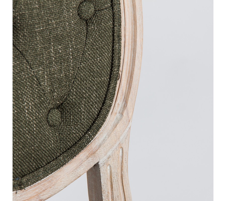Štýlová čalúnená zelená stolička PROVENCE v provensálskom štýle vyrobená z dubového dreva, dodáva interiéru výnimočný provence nádych a gombíky v poťahu romantickú eleganciu.