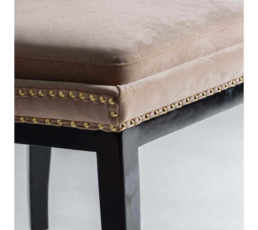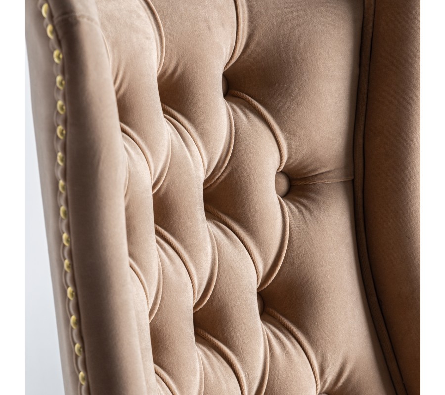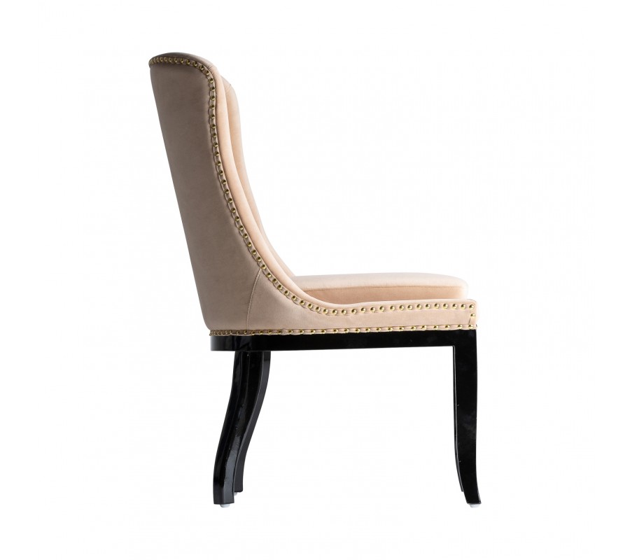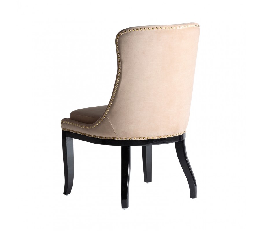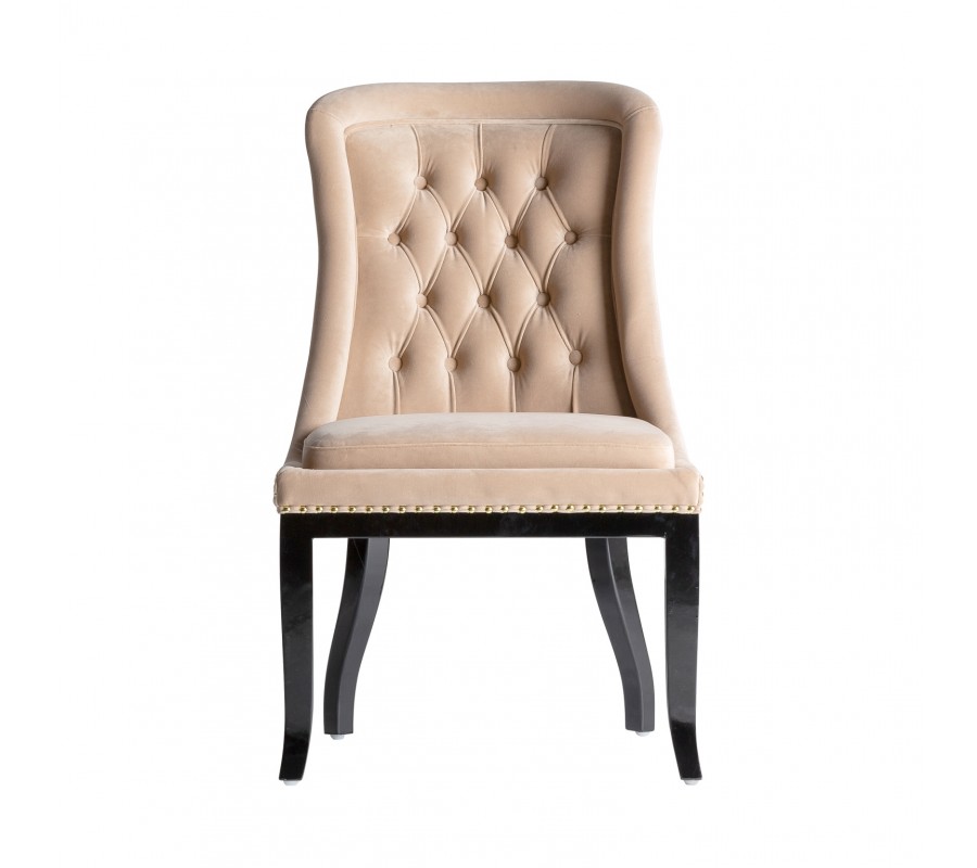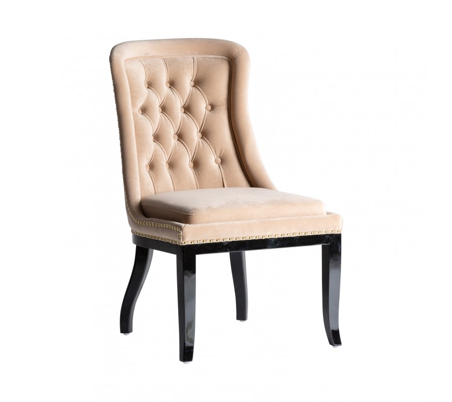 Štýlová jedálenská stolička Austin v krémovej farbe vytvorí elegantný nádych vo vašom interiéri vďaka svojmu dizajnovému prevedeniu. Zamatové čalúnenie v krémovom odtieni je doplnené prešívaním na zaoblenej chrbtovej opierke, ktoré pripomína chesterfield štýl, a taktiež stolička disponuje dizajnovými cvokmi po vonkajšej strane sedacej časti a opierky. Tieto vlastnosti vytvárajú stoličke retro nádych, ktorý je v neposlednom rade doplnený čiernymi masívnymi zaoblenými nožičkami. Komfortné sedenie zaistí spomínané zamatové čalúnenie, rovnako aj zamatový podsedák, ktorý vám v kombinácií so zaoblenou chrbtovou opierkou vytvoria pohodlie pri stolovaní. Vďaka svojmu krémovému čalúneniu a čiernym nožičkám odporúčame kombinovať jedálenskú stoličku Austin v tmavých domácnostiach alebo podnikoch, či firiem s čiernym masívnym nábytkom a svetlými sedačkami v podobnom štýle.