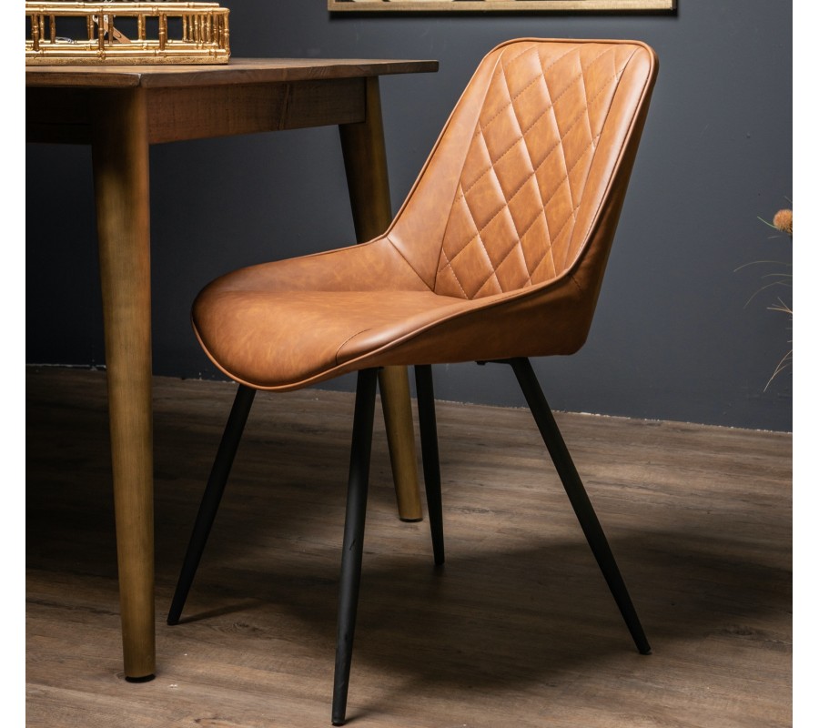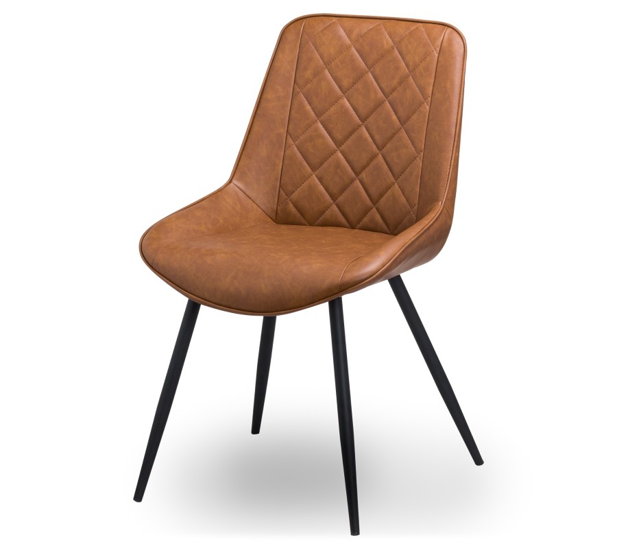 Štýlová jedálenská stolička Cindy s vintage nádychom je unikátna vďaka svojmu príjemnému koženému poťahu v hnedej farbe, ktorý vám zaistí komfort pri sedení za jedálenským stolom. Čierne kovové nožičky s hnedým koženým poťahom vytvárajú stoličke Cindy jemný industriálny nádych, ktorý vynikne aj v moderných tmavo zariadených interiéroch v kombinácií s tmavými industriálnymi dizajnovými doplnkami. Okrem iného je stolička Cindy veľmi ľahko kombinovateľná aj do moderných tmavých interiérov alebo do vintage zariadených jedální, kde vynikne zaujímavé dizajnové prešívanie na chrbtovej opierke v štvorcovom prevedení.
