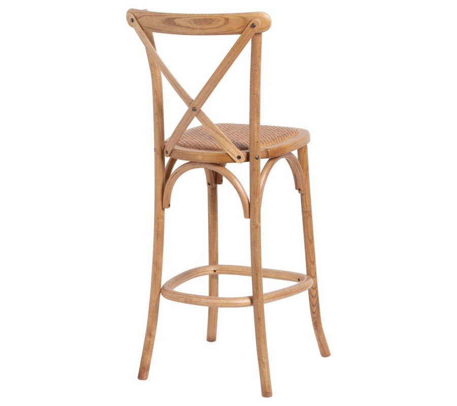 Dizajnová barová stolička Peura z kvalitného dubového masívu vo svetlo hnedej farbe je ľahko kombinovateľným kúskom a unikátne vynikne do vidiecky ladených interiérov v kombinácií s prirodzene hnedým nábytkom. Stabilitu a komfort pri sedení zaistia masívne ohýbané nožičky s opierkou na nohy, na ktorých je posadená sedacia časť s ratanovým vypletaným sedákom. Chrbtová opierka je obohatená o dizajnový prvok v tvare písmena X, ktorý podčiarkuje stabilné a komfortné sedenie na barovej stoličke Peura. Dubový masív a vypletaný sedák zaručia dlhovekosť a pohodlné sedenie vo vidiecky ladených priestoroch.