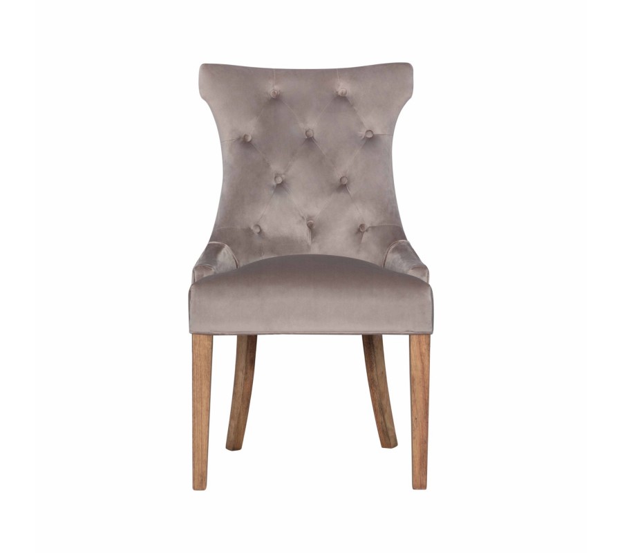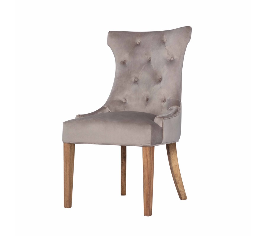 Dizajnová jedálenská stolička Dinah je vhodným kúskom do moderne i klasickejšie ladených jedální, pracovní či zasadacích miestností. Zaujme vďaka svojmu čalúneniu v svetlej béžovej farbe s nadčasovým chesterfield prešívaním na operadle. Sedacia časť i jemne tvarované operadlo sa postarajú o vaše stopercentné pohodlie a celkový dizajn je doplnený naturálnymi hnedými drevenými nohami. Tvarovaná vrchná časť operadla pripomína tvar kresla ušiak a dopĺňa celkový elegantný vzhľad stoličky. Stoličky Dinah sa dajú výborne kombinovať s masívnym jedálenským stolom v prírodnej hnedej farbe.