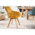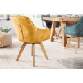 Otočné škandinávske zamatové jedálenské kreslo Caballet s opierkami na ruky a poťahom žltej farby 84cm