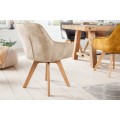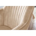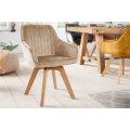 Škandinávske moderné otočné zamatové jedálenské kreslo Caballet s opierkami na ruky a poťahom béžovej farby 84cm