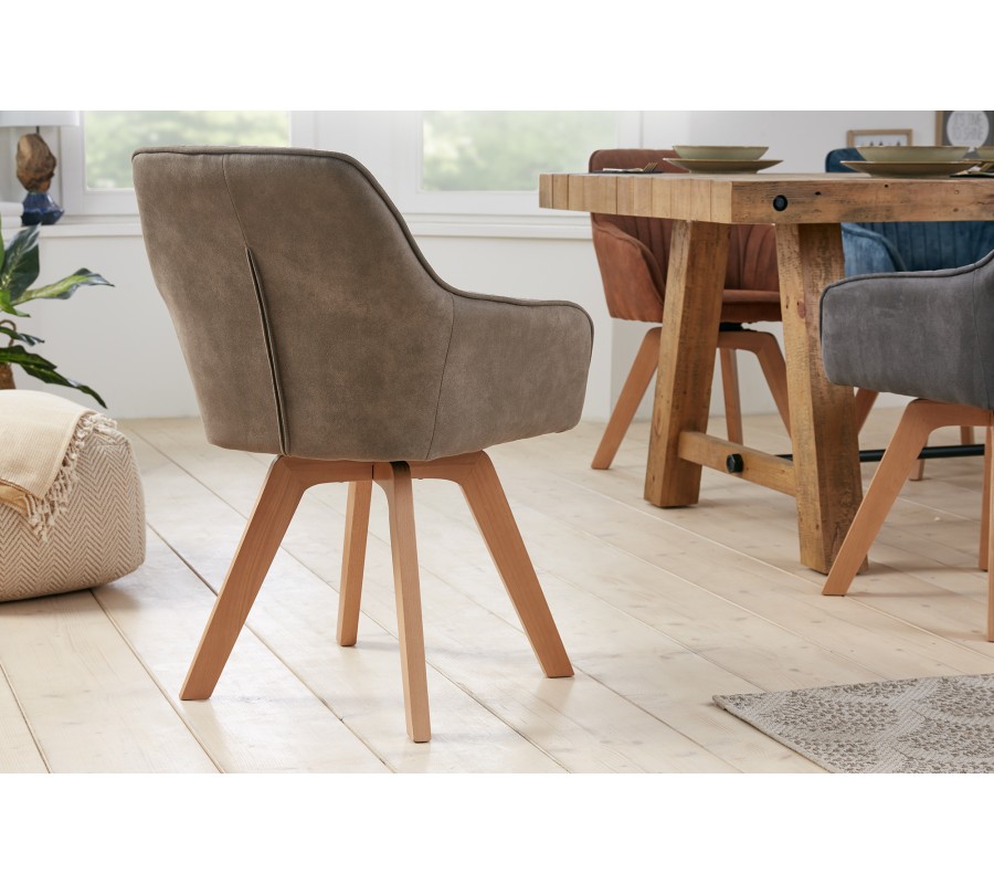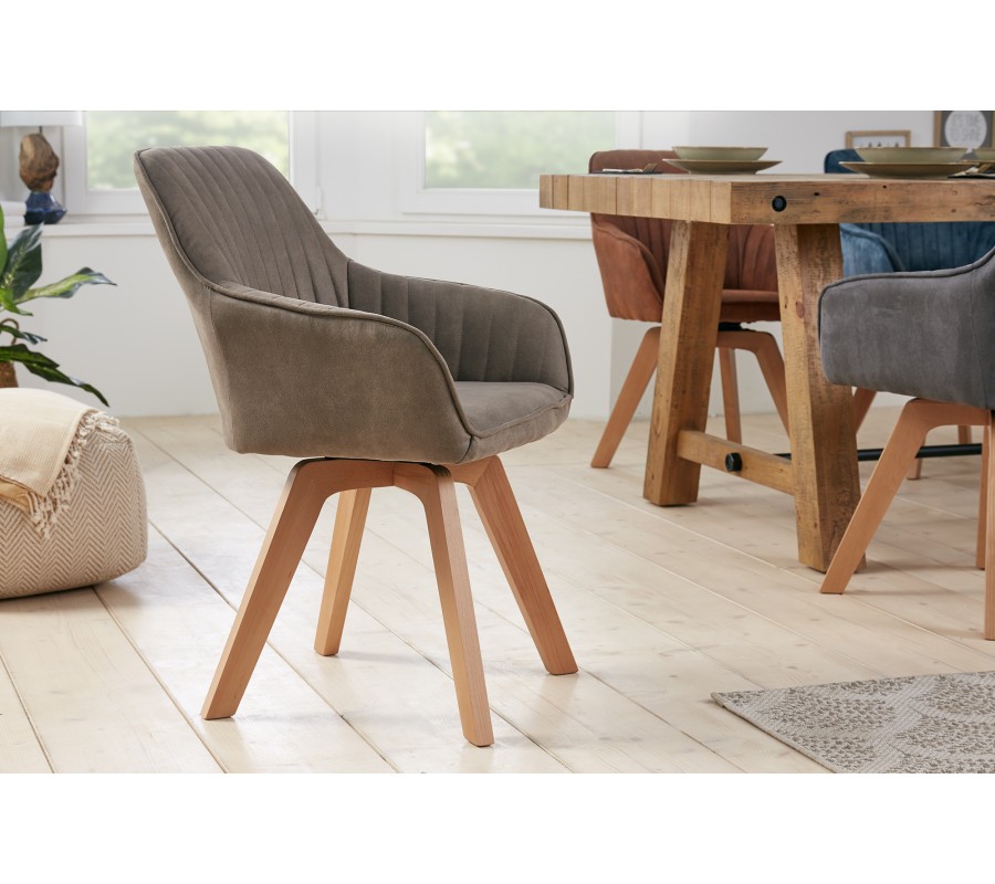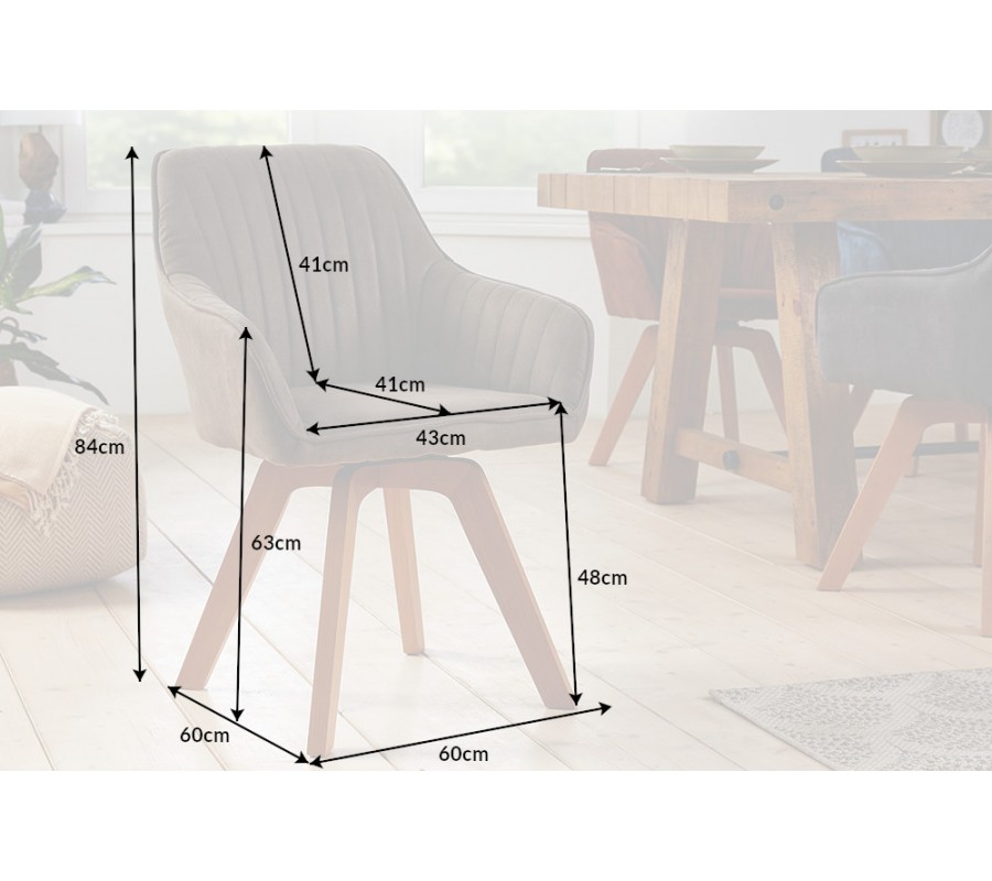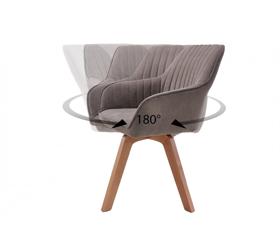 Luxusné a dizajnové jedálenské kreslo zo série Caballet je príjemným doplnkom do nejednej modernej domácnosti. Vkusné kreslo Caballet v škandinávskom štýle disponuje vhodnými opierkami na ruky, čo poskytne dodatočný komfort pri sedení. Jedálenské kreslo Caballet má taktiež príhodnú možnosť otáčania sedacej časti o 180 stupňov. Sedadlo je možné pri sedení otočiť do oboch bočných strán, čo zabezpečí komfortné usadenie či vstávanie od stola. Keď sa kreslo nepoužíva, sedacia časť sa bez záťaže automaticky natočí na prednú stranu, takže jedálenský priestor bude pôsobiť elegantne a uhladene. Jedinečné kreslo Caballet je potiahnuté zamatom v krásnom šedom odtieni a jeho nohy sú vyrobené z dreva s povrchovou úpravou, ktorá dovoľuje vyniknúť ich prirodzenej farebnosti. Dizajnové kreslo s vkusným vertikálnym prešívaním odporúčame kombinovať najmä s modernými dekoráciami a iným nábytkom v modernom či škandinávskom štýle v rámci jedinečných jedální, kuchýň či reštaurácií.