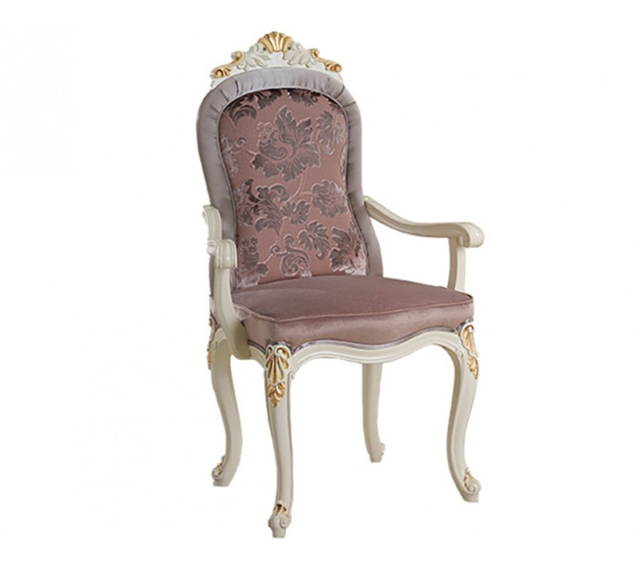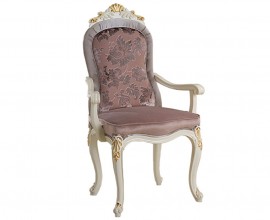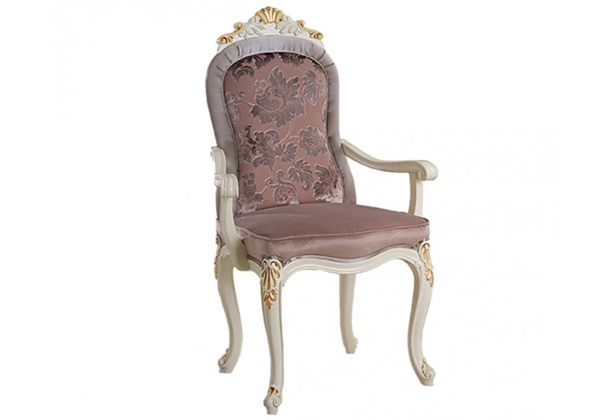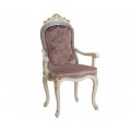 Klasická jedálenská stolička z kolekcie klasického vkusného talianskeho nábytku Pasiones vám zaručí pohodlné a štýlové sedenie vo vašej jedálni. Komfortný sed vám ponúkne bohato polstrovaná sedacia časť v starorúžovom zamatovom vyhotovení, bočné opierky v jemne zaoblenej, elegantnej línií a zadná opierka so zamatovým zdobeným čalúnením s listovým vzorom v obdobnej starorúžovej farbe. Spomenuté čalúnenie sa po svojej vonkajšej časti nesie v starofialovom prevedení. Čerešničkou na torte je vyrezávaná dizajnová figúra, ktorá pripomína korunku v bielej farbe so zlatými kovovými prvkami. Jedálenská stolička Pasiones disponuje bielym ručne vyrezávaným masívnym drevom, ktoré vás očarí svojimi ladnými líniami a zlatými ornamentálnymi doplnkami na vrchnej a spodnej časti nožičiek. Klasický vzhľad jedálenskej stoličky Pasiones vynikne vo svetlých jedálňach v kombinácií s bielym masívom a so zlatými doplnkami. Neváhajte pri stolovaní použiť aj obrus vo farbách čalúnenia stoličky.