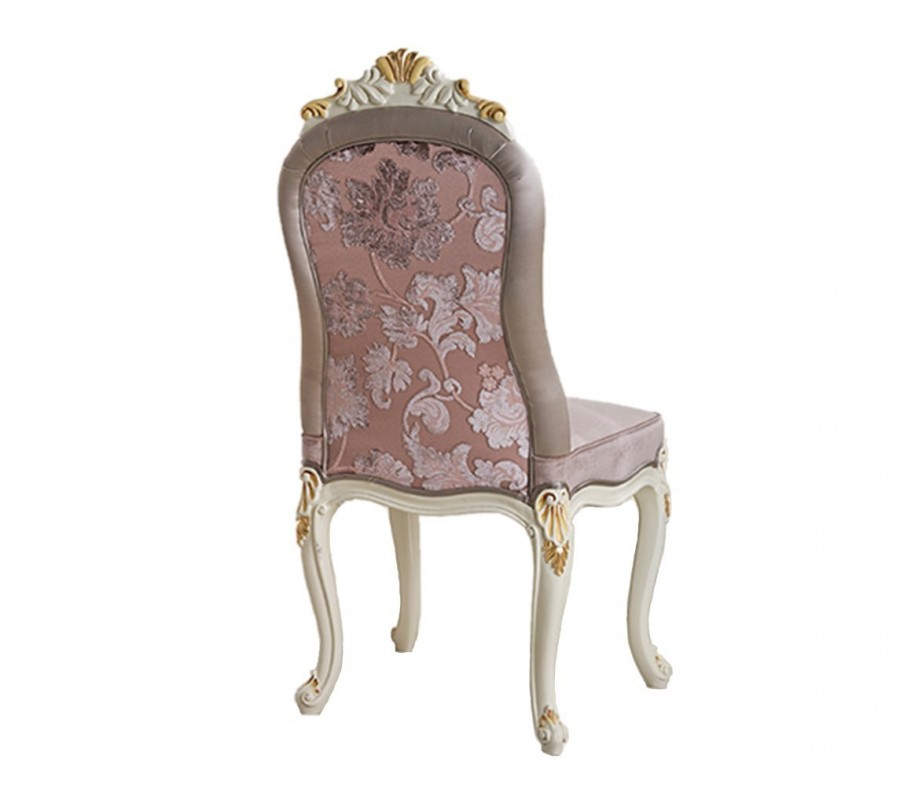 Jedinečná jedálenská stolička z kolekcie krásneho klasického nábytku Pasiones môže zdobiť aj vašu jedáleň svojím unikátnym dizajnom. Biele ručne vyrezávané masívne drevo je doplnené zlatými dizajnovými prvkami a dekoráciami na nožičkách a na samotnom vŕšku chrbtovej opierky, kde vyrezávanie vytvorí vzhľad korunky, vďaka ktorej sa budete cítiť pri stolovaní naozaj kráľovsky. Okrem masívnej konštrukcie vám pohodlné sedenie zaručí bohato polstrovaná sedacia časť a spomenutá chrbtová opierka. Elegantné čalúnenie je vyhotovené v starofialovej klasickej farbe, no zároveň sa jeho vnútorná časť na opierke nesie vo svetlejšej starorúžovej farbe s kvetinovým vzorom, čo vytvorí nádych zámockého štýlu. Jedálenská stolička Pasiones vynikajúco vynikne vo svetlejších interiéroch s bielym masívnym nábytkom, s ktorým opticky zväčšíte váš priestor, taktiež so zlatými doplnkami a dekoráciami.