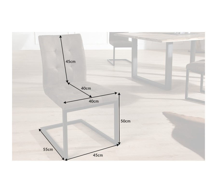 Industriálna jedálenská stolička Oxford s čiernou kovovou konštrukciou a sivým čalúnením z mikrovlákna 90cm