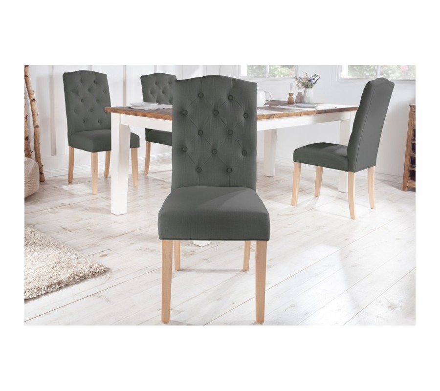 Škandinávska jedálenská stolička Valentino s masívnymi nohami a sivým prešívaným čalúnením 104cm
