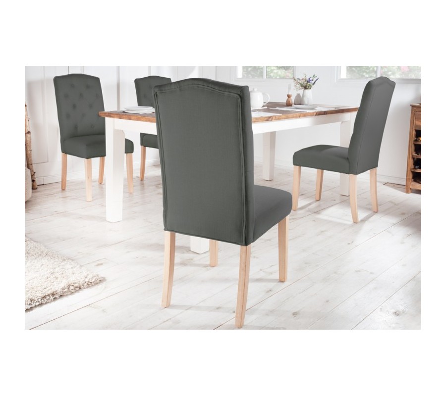 Elegantná jedálenská stolička Valentino je štýlovým nadčasovým kúskom nesúcim sa v škandinávskom štýle. Vďaja svojmu jednoduchému minimalistickému dizajnu poľahky zapadne do moderných priestorov jedální, kuchýň či zasadacích miestností. Stolička disponuje príjemným textilným čalúnením v univerzálnej sivej farbe, pričom operadlo je zdobené vkusným chesterfield prešívaním. Nožičky z masívneho dreva hnedej farby zaručujú výbornú stabilitu a zároveň dopĺňajú celkový moderný vzhľad. Stoličky Valentino vytvoria peknú kombináciu s masívnym jedálenským stolom a s doplnkami v svetlých farebných odtieňoch.