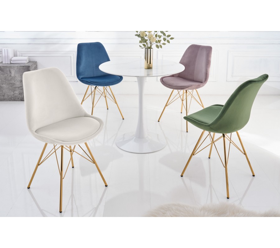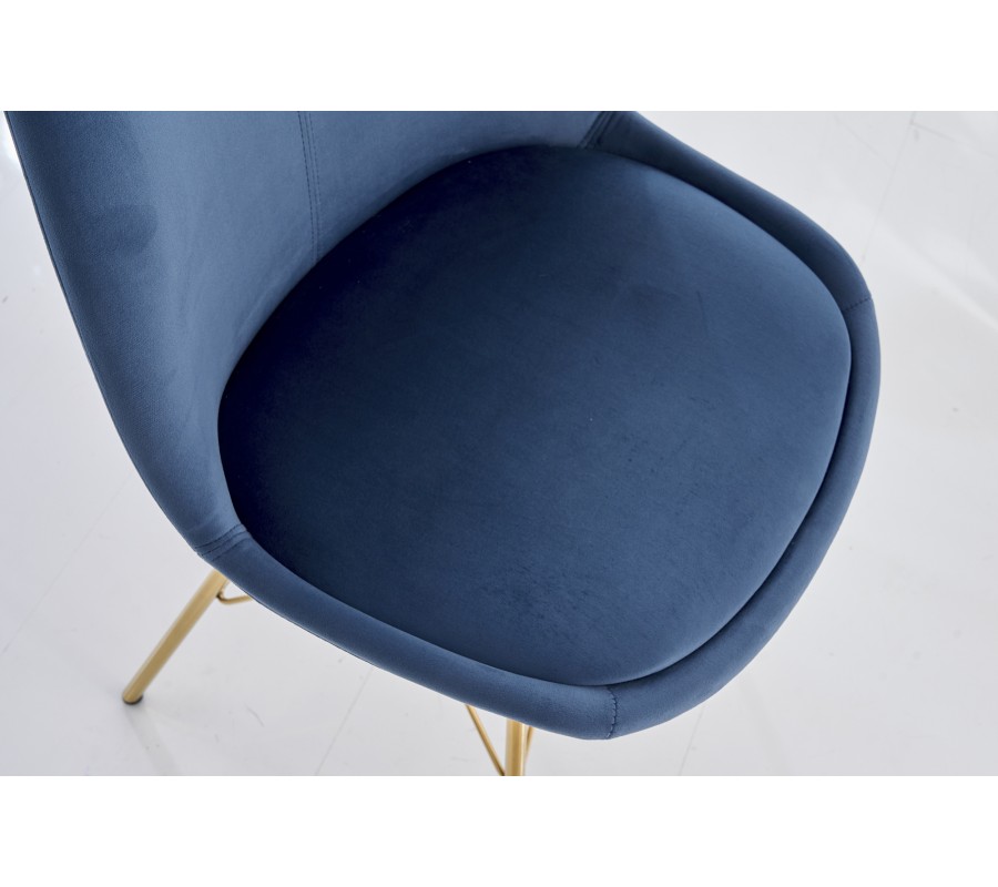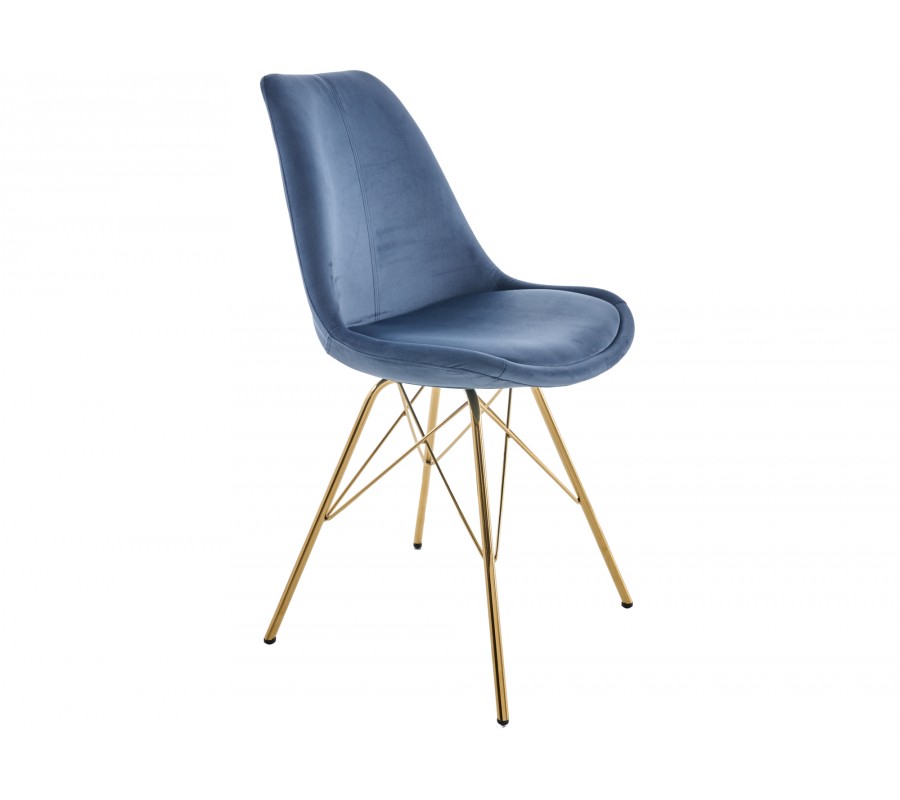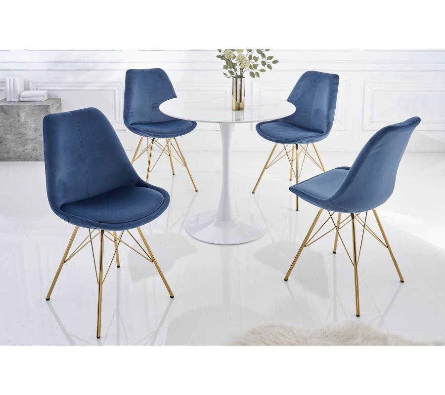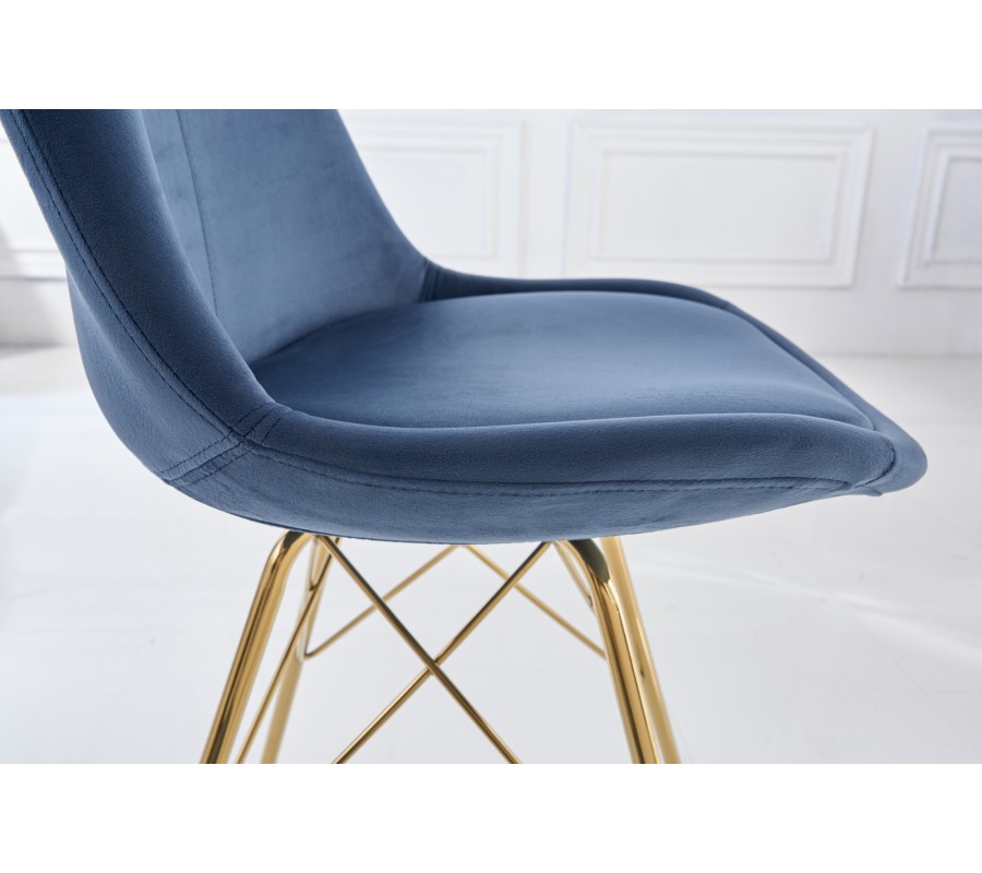 Dizajnová stolička Scandinavia so zlatými kovovými nožičkami a modrým poťahom 86cm