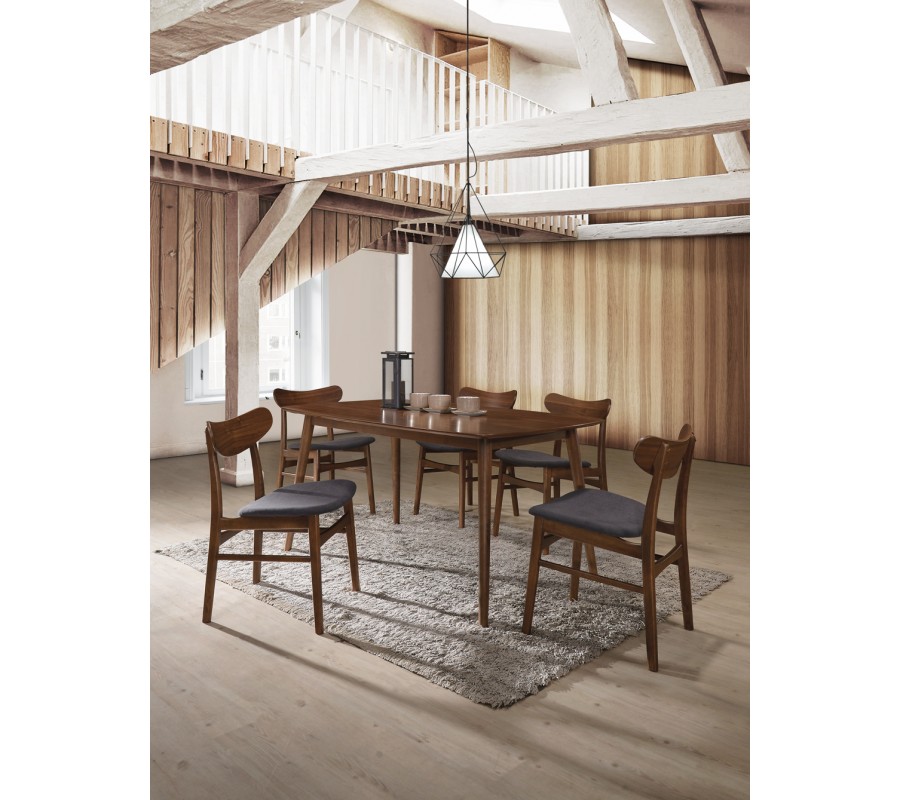 Škandinávska jedálenská stolička Nordica Nogal v orechovo hnedom prevedení s tmavosivým čalúnením 80cm