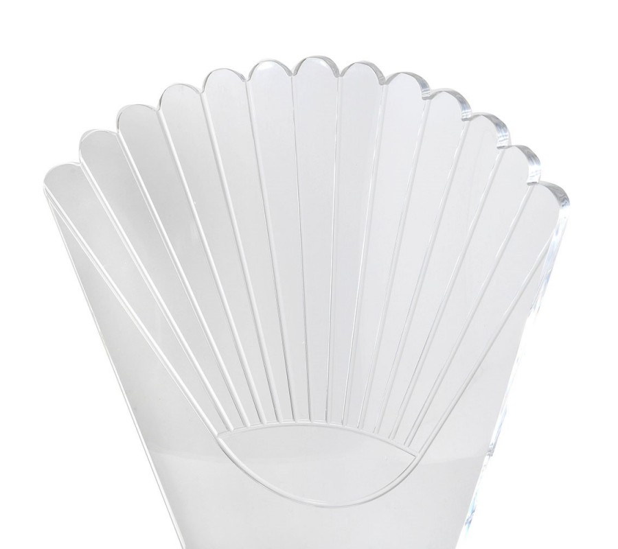 Art-deco štýlová jedálenská stolička Clarice je unikátnym kúskom, ktorý vynikne vo vašej jedálni vďaka svojmu vyšperkovanému dizajnu. Prvým zaujímavým prvkom dizajnovej stránky jedálenskej stoličky Clarice je tvarovaná akrylová chrbtová opierka so vzhľadom pripomínajúcim mušlu. Tento nevšedný, no zároveň prítažlivý dizajn je doplnený jemne zaoblenými nožičkami, ktoré tak pripomínajú rustikálny štýl nábytku. Pohodlný sed a stolovanie vám zaručí luxusná jedálenská stolička Clarice prostredníctvom svojej komfortnej sedacej časti v tmavosivom zamatovom čalúnení. Vďaka svojmu svetlému dizjanu odporúčame kombinovať jedálenskú stoličku Clarice so sklenenými a priehladnými jedálenskými stolmi, ktoré v kombinácií s jedálenskou stoličkou opticky zväčšia priestor, alebo s nábytkom so sivými kovovými prvkami.