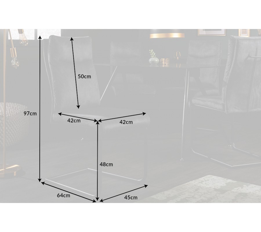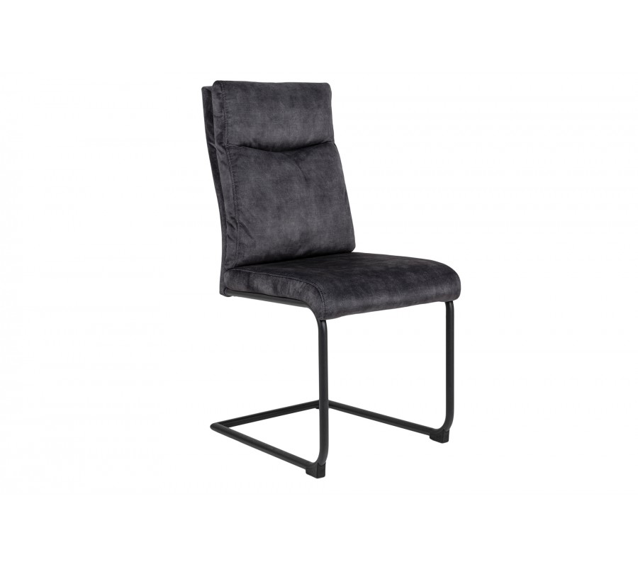 Industriálna jedálenská stolička Vitto Vám prinesie moderný tmavý dizajn do vašej štýlovej jedálne. Medzi silné stránky jedálenskej stoličky Vitto patrí jej kvalitné a príjemné zamatové čalúnenie v tmavo sivej farbe, ktoré je obohatené o vertikálne prešívanie pri strede chrbtovej opierky. Pohodlný sed Vám zaručí spomenuté čalúnenie, a taktiež aj ergonomický tvar chrbtovej opierky s jemným zaoblením pri sedacej časti. Stabilitu modernej jedálenskej stoličky Vitto zaručí čierna kovová podstava s dvoma spojenými nožičkami. Vďaka svojmu dizajnovému prevedeniu odporúčame kombinovať modernú jedálenskú stoličku Vitto v moderných, či industriálne zariadených jedálňach, kde vynikne tmavé farebné prevedenie nožičiek a tmavo sivého čalúnenia.