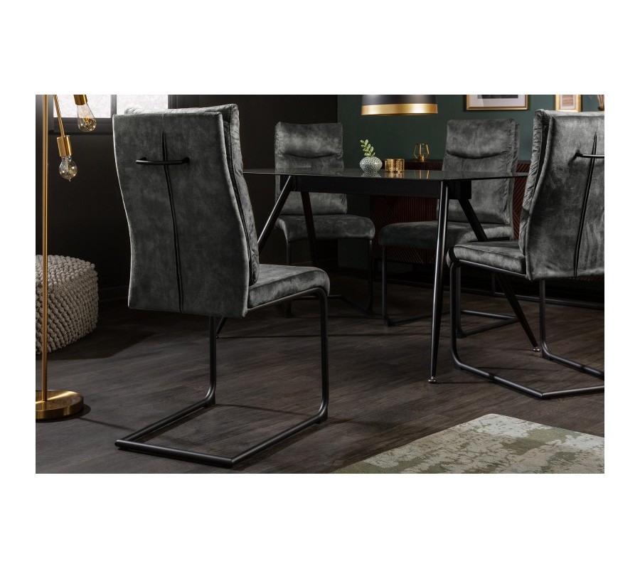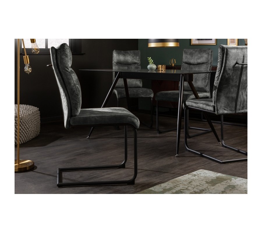 Moderná jedálenská stolička Vitto je krásnym kúskom, ktorý perfektne vynikne v tmavo zariadených jedálňach, ktoré disponujú kovovými a modernými prvkami. Dizajn jedálenskej stoličky Vitto sa nesie v kvalitnom prevedení tmavo zeleného až čierneho zamatového čalúnenia, ktoré okrem nadčasového vzhľadu prináša aj komfort a príjemné sedenie. Spomenutý komfort je umocnený vďaka ergonomicky tvarovanej, prešívanej chrbtovej opierke a pohodlnej sedacej časti. Stabilitu pri sedení v neposlednom rade zaručí čierna podstava z kovu, ktorá vytvára moderný industriálny vzhľad. Jedálenskú stoličku Vitto odporúčame kombinovať v spomenutých tmavých jedálňach v kombinácií s nábytkom z kovu, a taktiež aj s bledými kobercami s nízkym vlasom a svetlými dekoráciami pre osvetlenie farebného prevedenia jedálne.