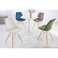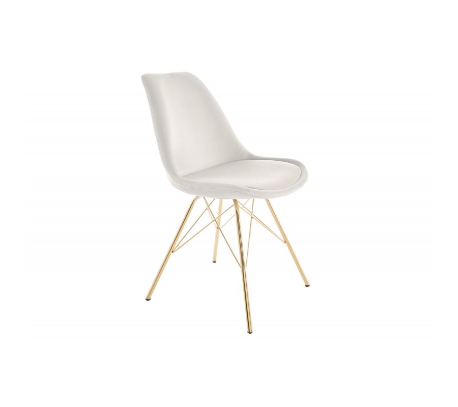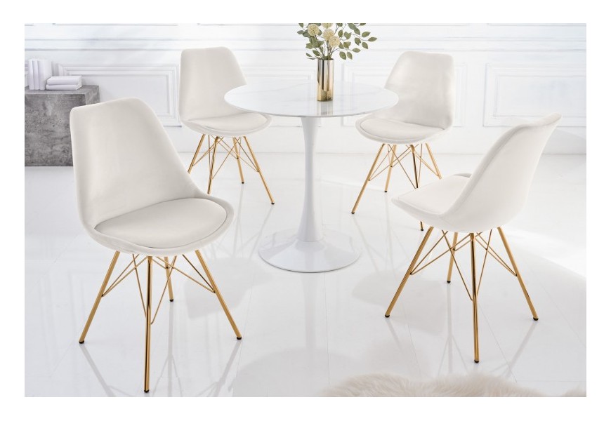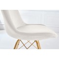 Moderná art deco stolička Scandinavia so zlatou kovovou konštrukciou a zamatovým poťahom vo farbe champagne