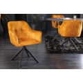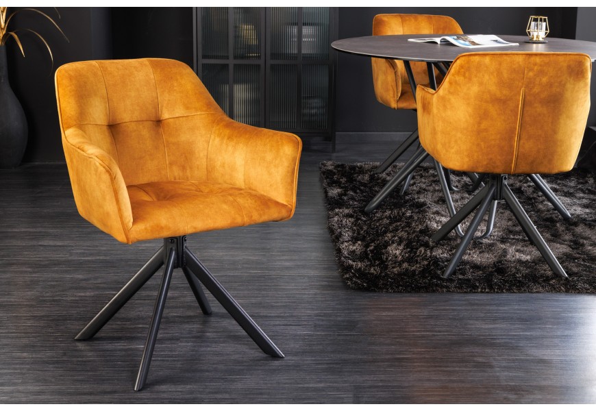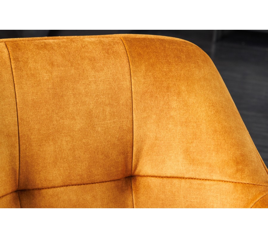 Industriálna moderná otočná kancelárska stolička Devon so zamatovým okrovým čalúnením a čiernymi nohami z kovu 83cm
