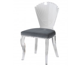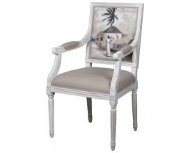 Vintage stolička Garibaldi sivo-bielej farby s ornamentálnym zdobením technikou intarzie 88cm