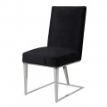 Art deco chrómová jedálenská stolička Mayfair s čiernym čalúnením a striebornými nohami 102cm