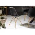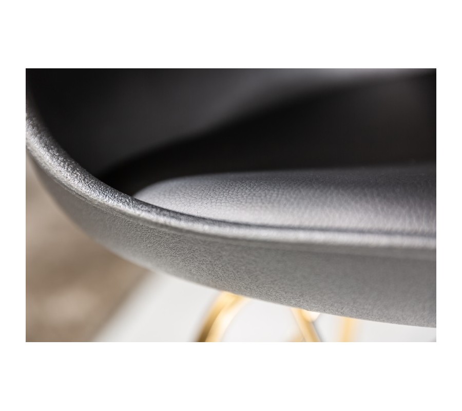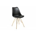 Art-deco čierna jedálenská stolička Scandinavia z eko kože s kovovými nožičkami v zlatej farbe 85cm