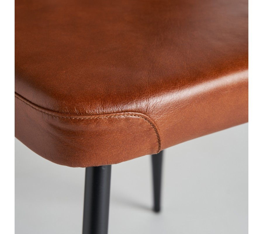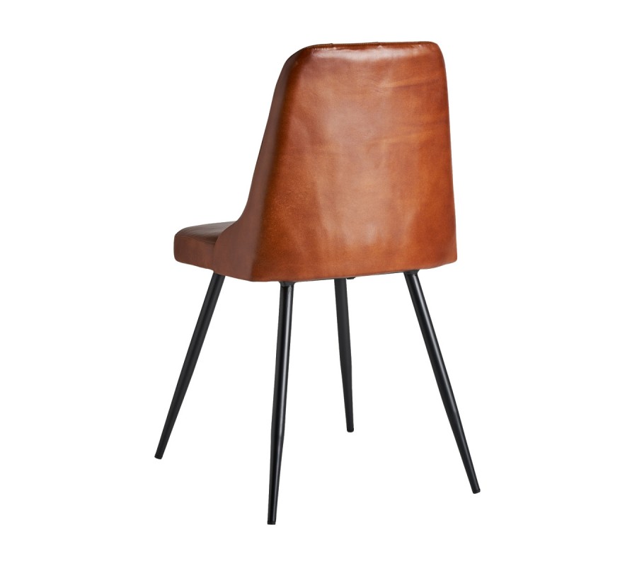 Vintage dizajnová jedálenská stolička Kingsley s hnedým koženým čalúnením a čiernymi nohami z kovu 85cm