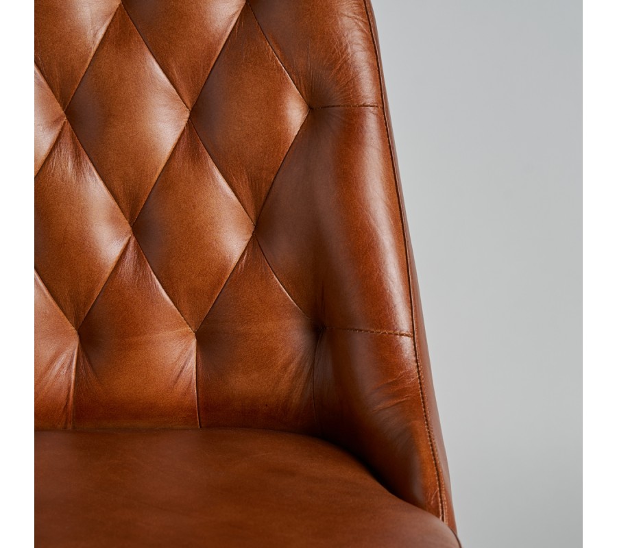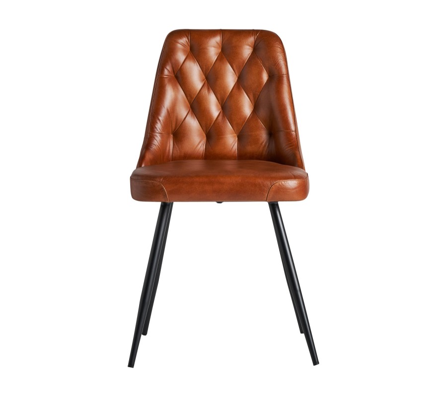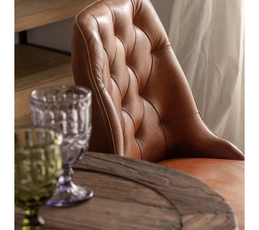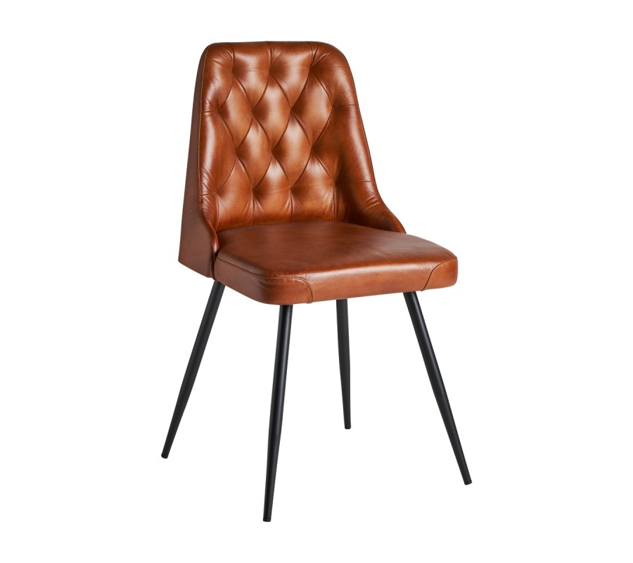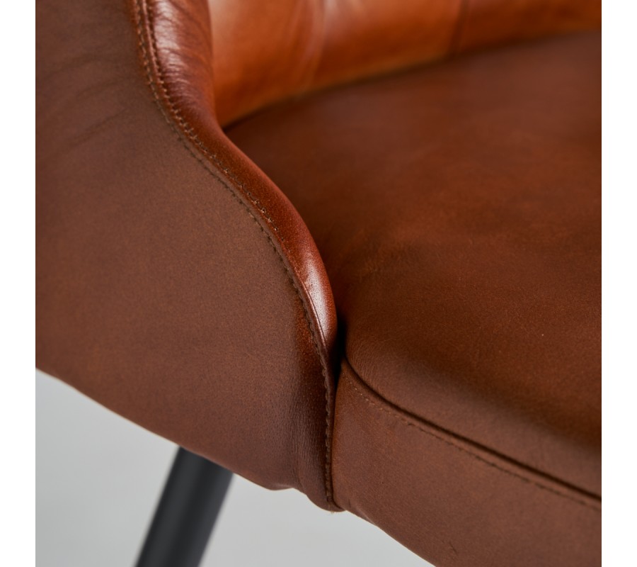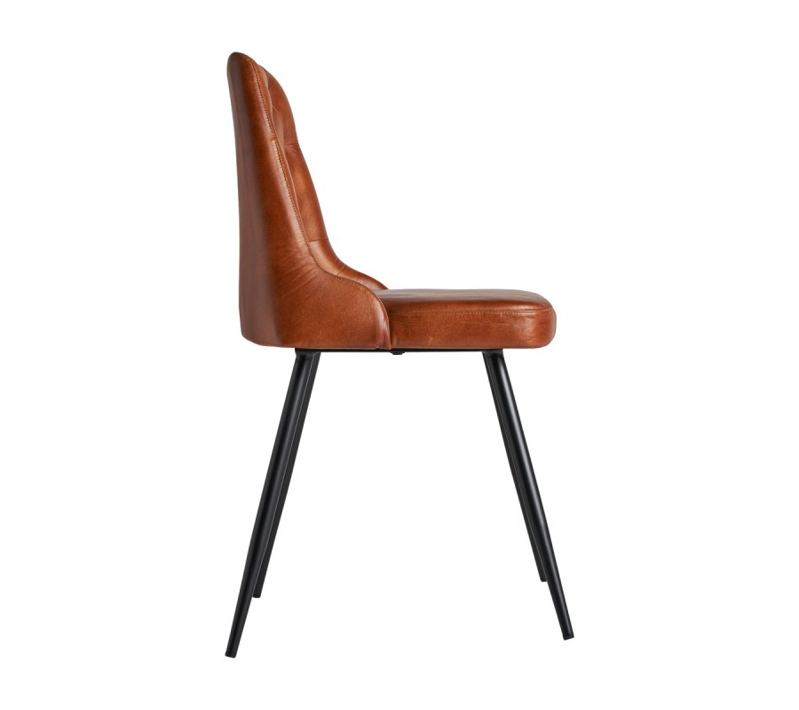 Exkluzívna jedálenská stolička Kingsley vkusne doladí vintage ladené priestory jedální, kuchýň či obývačiek. Predstavuje tiež vhodné riešenie do zasadacích či konferenčných miestností, priestorov hotelov alebo tématicky ladených reštaurácií. Autentický vintage vzhľad je dosiahnutý kombináciou čiernej konštrukcie z kovu s luxusným koženým čalúnením nesúcim sa v hnedej farbe. Tvarované operadlo je doplnené dizajnovým chesterfield prešívaním umocňujúcim vintage vzhľad, a vďaka zauobleným okrajom je prispôsobené pre váš dokonalý komfort. Materiálová a farebná kombinácia vytvárajú unikátny vzhľad, ktorý vaše priestory esteticky doplní a zároveň sú stoličky praktickým a funkčným riešením. Jedálenská stolička Kingsley vynikne v kombinácii s masívnym jedálenským stolom a s doplnkami v tmavších prírodných odtieňoch.