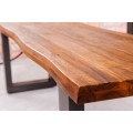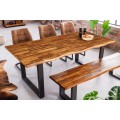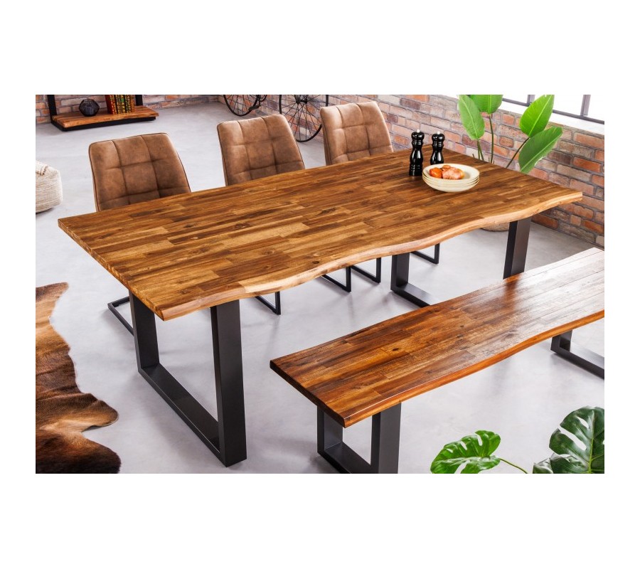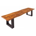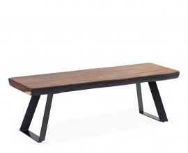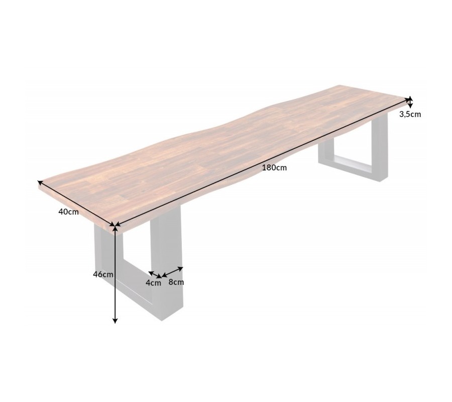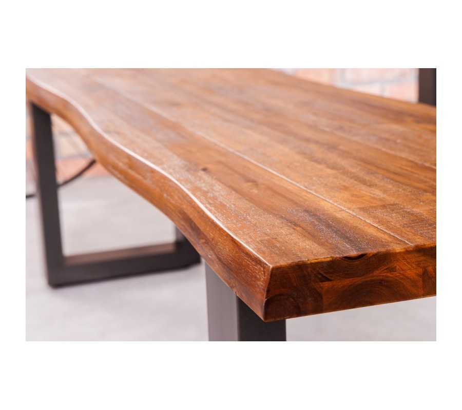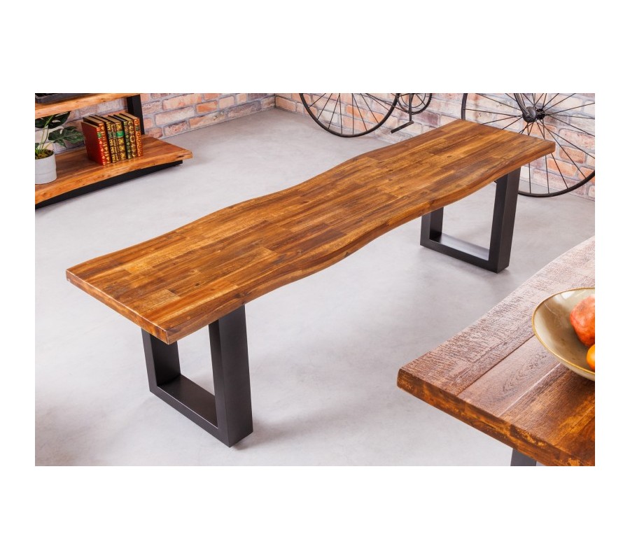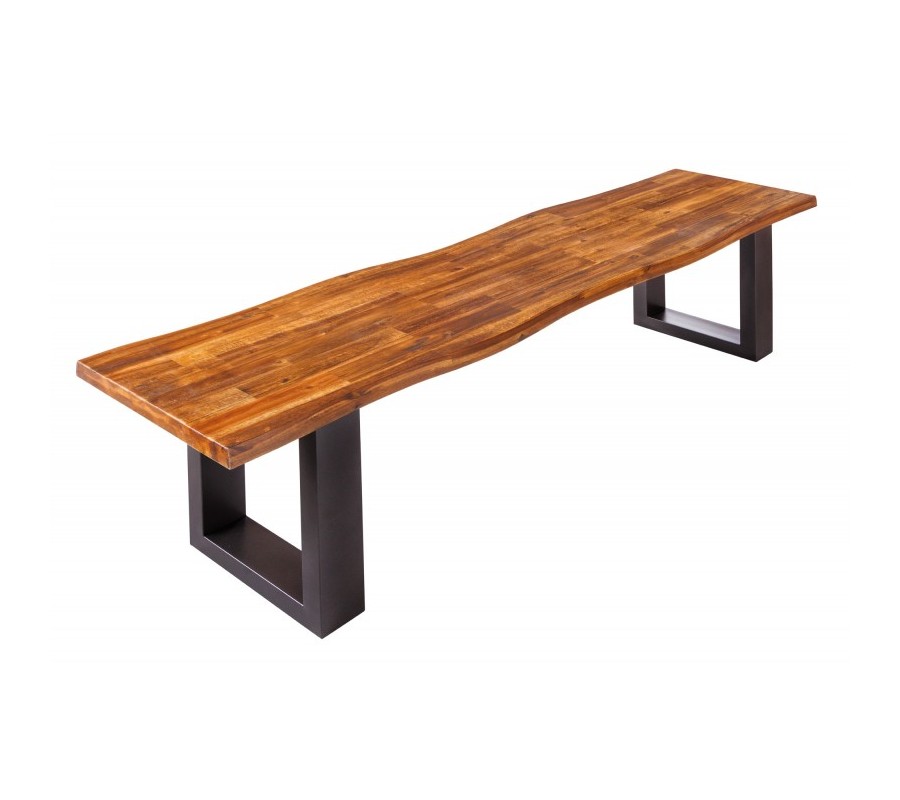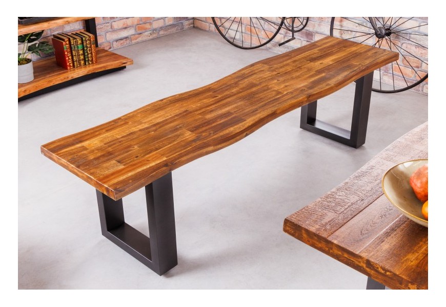 Industriálna jedálenská lavica Marron Miel z masívneho akáciového dreva hnedej farby a čiernymi nohami z kovu 180cm